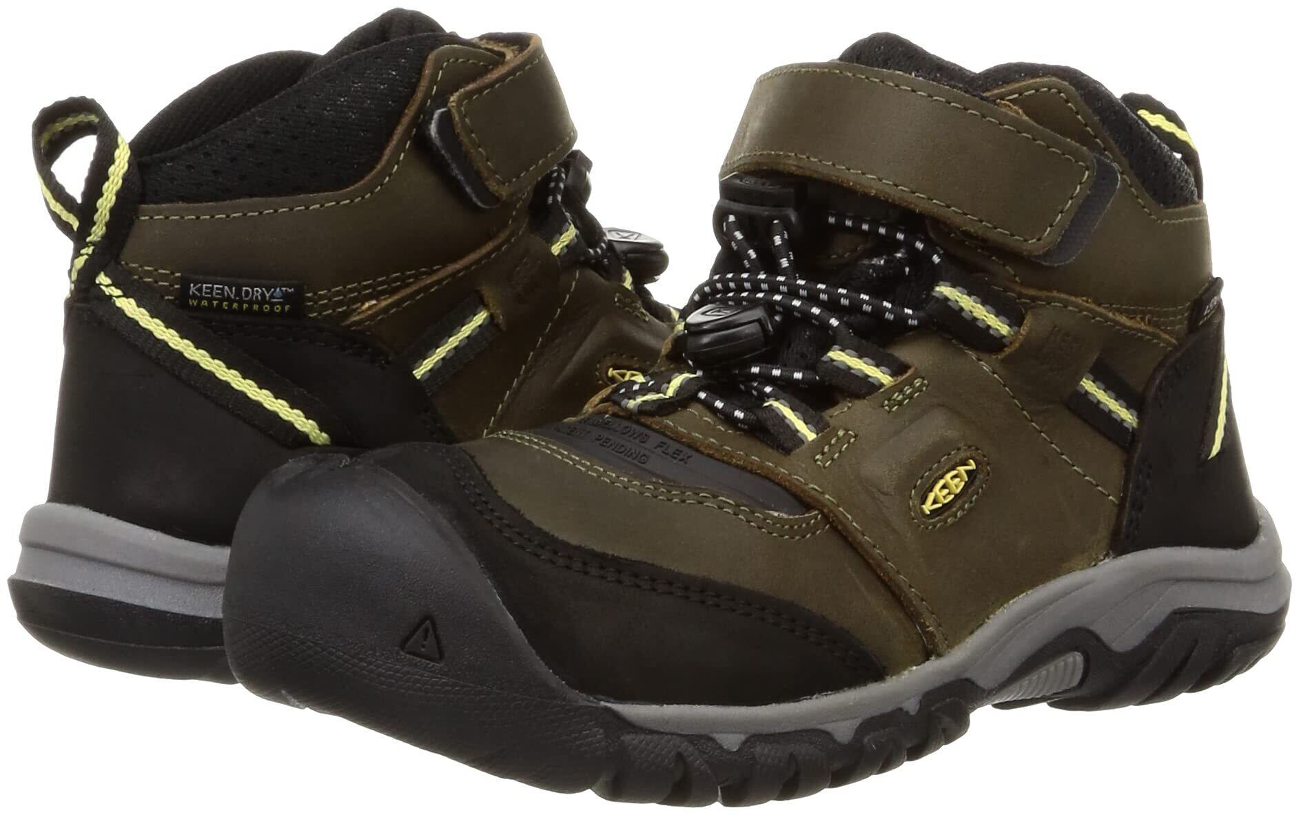 [キーン] トレッキングシューズ RIDGE FLEX MID WP(15.0~19.5cm) リッジ フレックス ミッド ウォータープルーフ キッズ DARK OLIVE/DUSKY CITRON 18.5 cm
