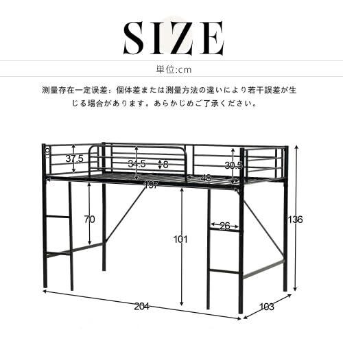 1.ワンルームや子供部屋に最適なロフトベッドです。ベッドの下にはソファやデスク、シングルベッドなど、さまざまなアイテムを置くことができるため、スペースを無駄にせずに効果的に活用できます!また、シンプルなデザインなので、どのような部屋のインテリアにも簡単に合わせることができます。 2. 両側にはしごが付いたロフトベッドは、登りやすさが魅力です。どちらの側からでも簡単にベッドにアクセスできます。これにより、時間を節約し、快適に寝床に入ることができます。さらに、この設計はスペースを有効に活用します。ベッドの下にデスクや収納スペースを配置できます。両側にはしごが付いたロフトベッドは、利便性とスペース効率を高め、安心して使用できます。 部屋のレイアウトや家具の配置によっていつでも調整でき、左右どちらでも取付けが可能です。 さいませ。 3. ロフトベッドは簡易な衣類掛けとしても機能します。タオルや衣類など、様々なものを素早くかけることができます。ベッドのフレームやはしごには、便利なフックや棚が付いている場合もあります。これにより、必要なアイテムを手軽に収納できます。また、衣類の整理や通気性の向上を促し、清潔で整頓された環境を維持するのに役立ちます。多機能性とスペースの有効活用により、快適な生活空間を提供します。 4.【安全性を重視したデザインのロフトベッドは、頑丈な30cmのサイドフレームを備えています。美しいデザインとバランスを保ちながら、安心感を提供します。 ベッド下にたっぷりの収納スペース】床板が高く、床下には35cmの収納スペースがあり、収納の利便性が際立っています。さらに、十分な収納スペースが確保されているため、衣類、寝具、おもちゃなどの雑多なアイテムを整理整頓することができます。忙しい家庭や収納スペースが限られている方々にとって、このベッドは非常に便利です。収納ニーズに応え、スッキリとした空間を実現することができます。 5脚床面が高くなっているため、下の空間が通気性がよくなり、湿気やカビ、ダニの繁殖を防ぐことができます。さらに、重量を分散することで、安定感が増し、より安心してご使用いただけます。 6.安定感を重視して、横揺れを軽減する16本の頑丈なフレームを採用しました。揺れにくい構造なので大人の男性でも安心してご使用いただけます。