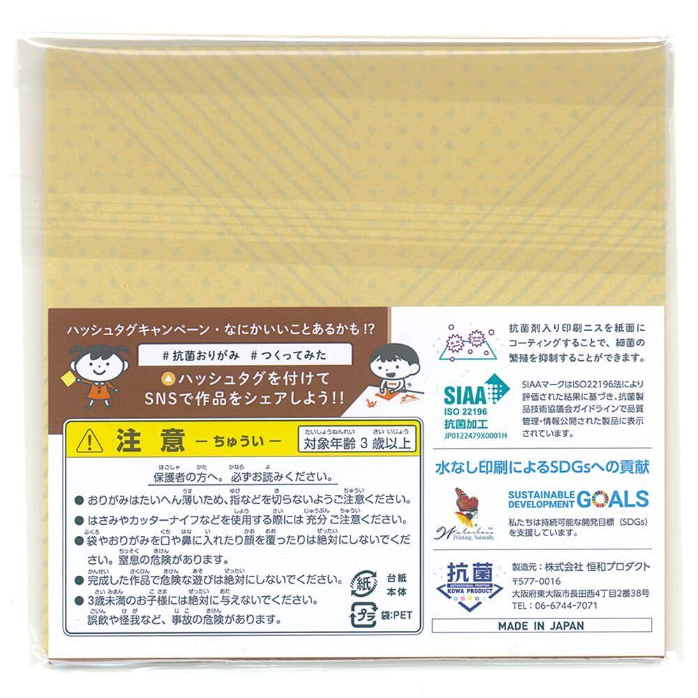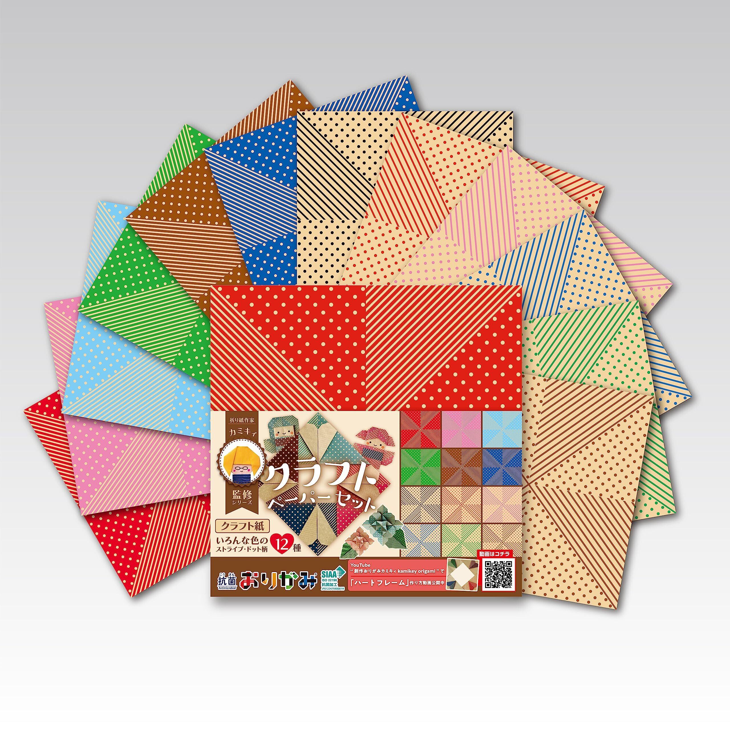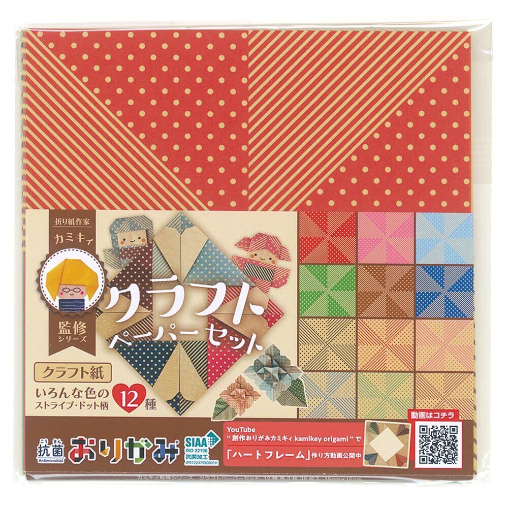 YouTubeや書籍で大人気!子どもから大人まで女性に支持を集める折り紙作家「カミキィ」監修シリーズ こんなのもいかがでしょうか。 折り紙作家目線で「組み合わせやすい」「折った後の柄の出方がおもしろい」色柄を厳選。折りやすい薄手のクラフト紙でストライプとドットのタイプが計12種類各3枚入り 合計36枚入り。クラフト紙のナチュラルな色合いで、折り紙作品がシックでおしゃれな感じに仕上がります。抗菌製品協議会(SIAA)認定の抗菌印刷ニスを紙の両面全面に施しております。 子供向けイベントで・お子様やお孫様へのプレゼントに・お祝いやお見舞いの時に・ 幼稚園や介護施設などでのレクリエーションに・切って使って飾る装飾をしたい時など、 その他多くのシーンでお使いになっていただけます。 老若男女・大人子供問わず家族みんなで安心安全に遊べ、また知育教育や認知予防にも。 折り紙は日本ならではの遊び、文化であり、想像力・集中力・思考力・色彩感覚が磨かれるなど様々なメリットがあります。 貼り絵、切り絵などでもお楽しみいただけます。