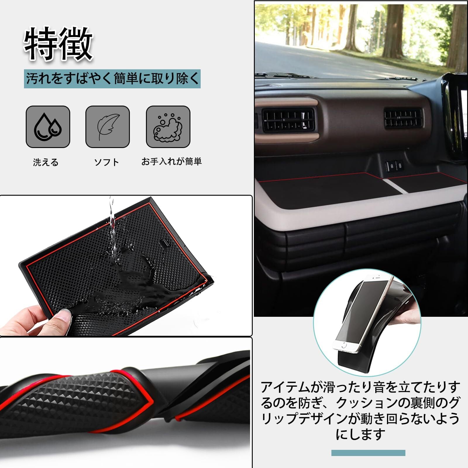 機能:スペーシアカスタム 3代目 のノンスリップマットのデザインは、摩擦を増やし、滑り止めと防塵、水を通さず、掃除が簡単なように使用されています。ゴム素材は騒音の防止に役立ちます。