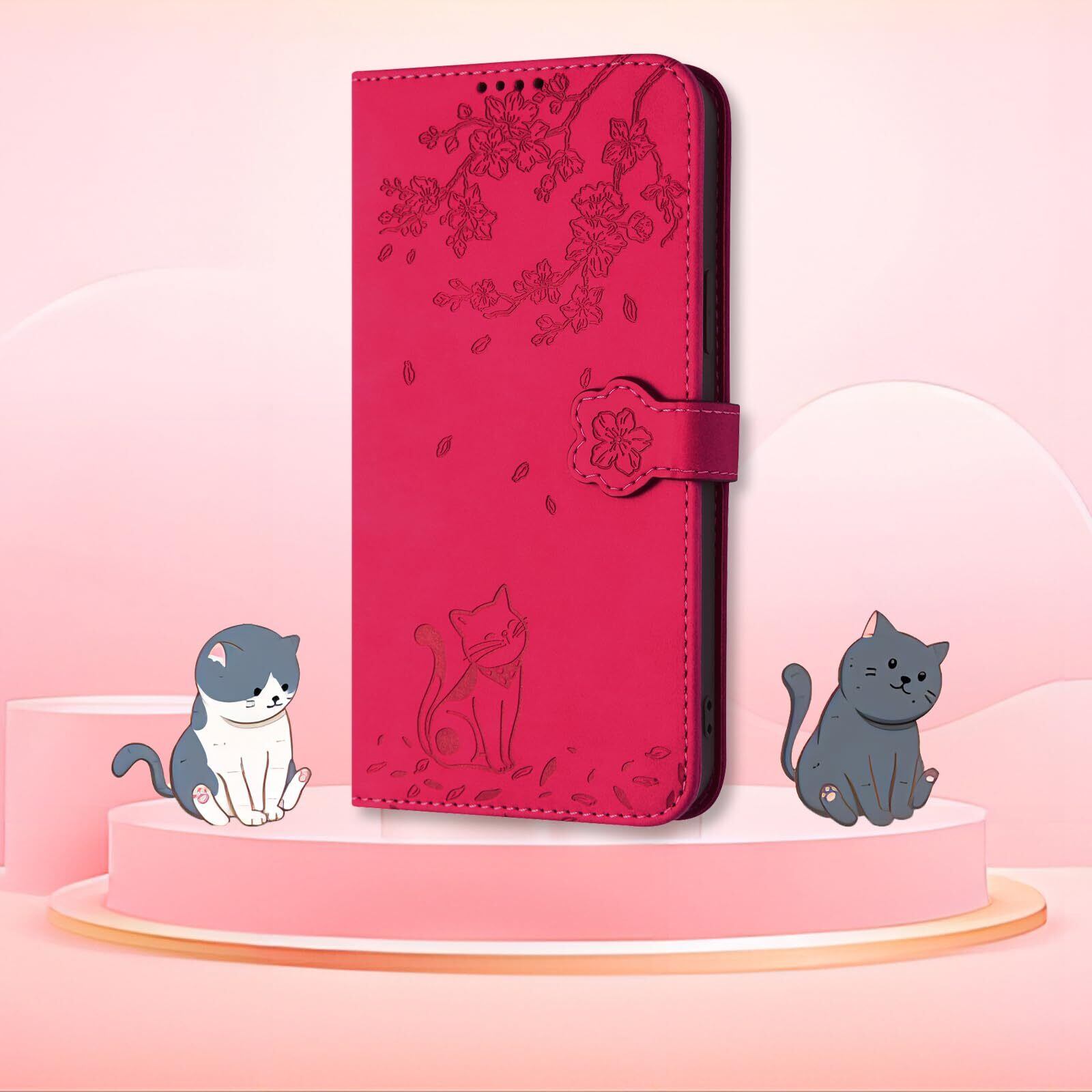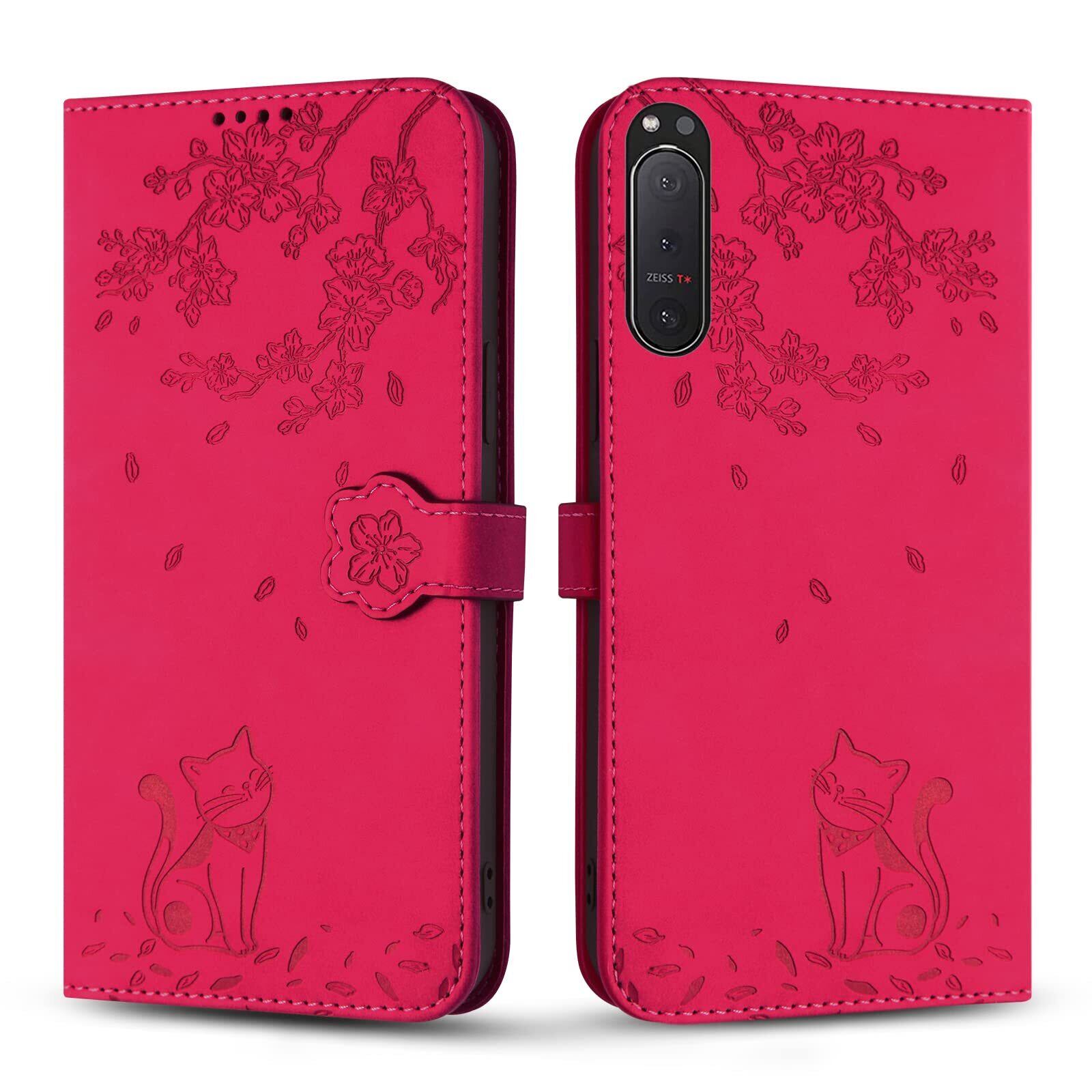 Xperia 5 Ⅱ ケース 手帳型 エクスペリア 5 ii ケース Rosbtib Xperia 5 Ⅱ SO-52A ケース プラムブロッサム ラブリー 子猫柄 SOG02 スマホケース 高級PUレザー カード収納 Sony Xperia 5 Ⅱ 携帯カバー マグネット式 スタンド機能 Xperia 5 Ⅱ SO-52A / SOG02 ケースカバー 財布型 (ローズレッド)