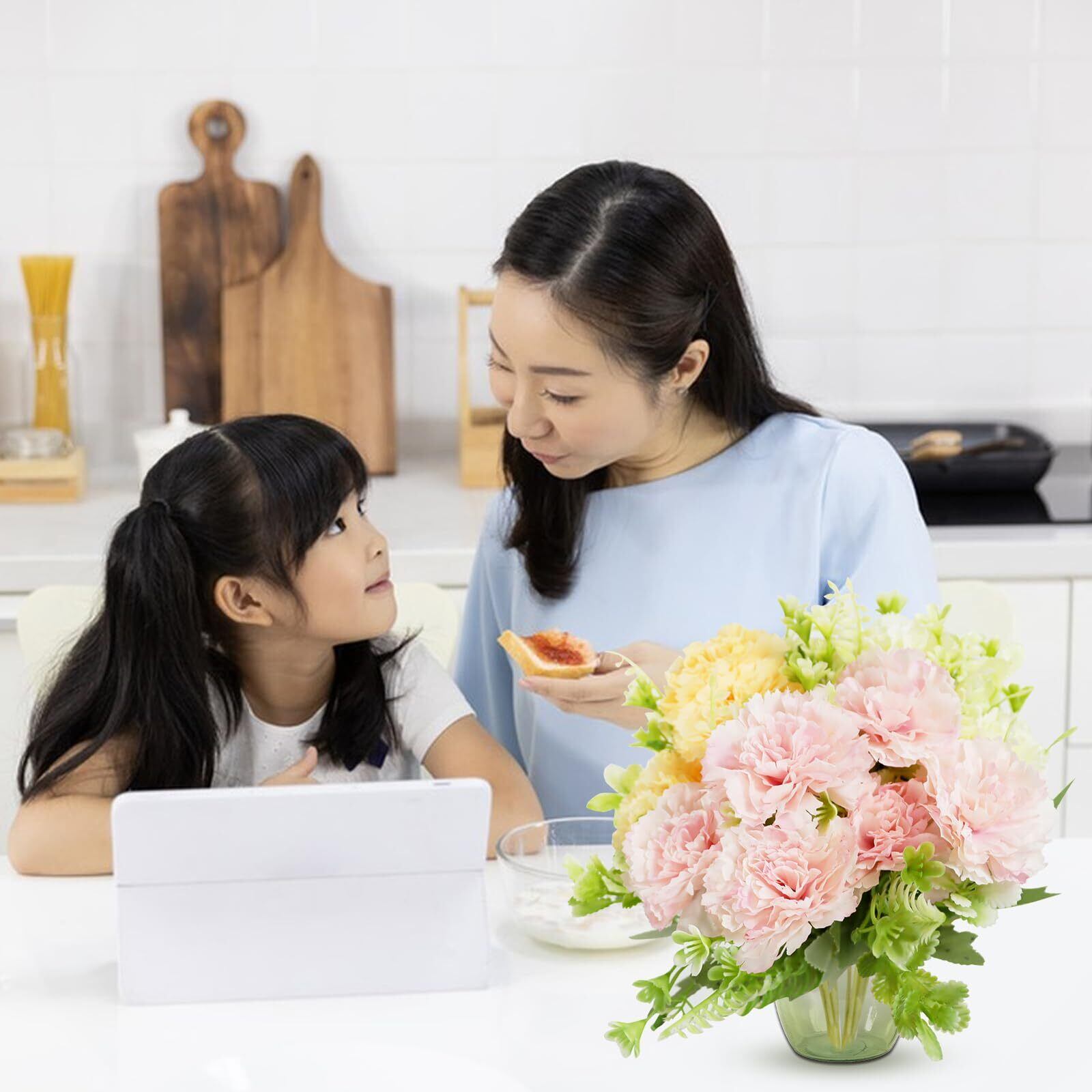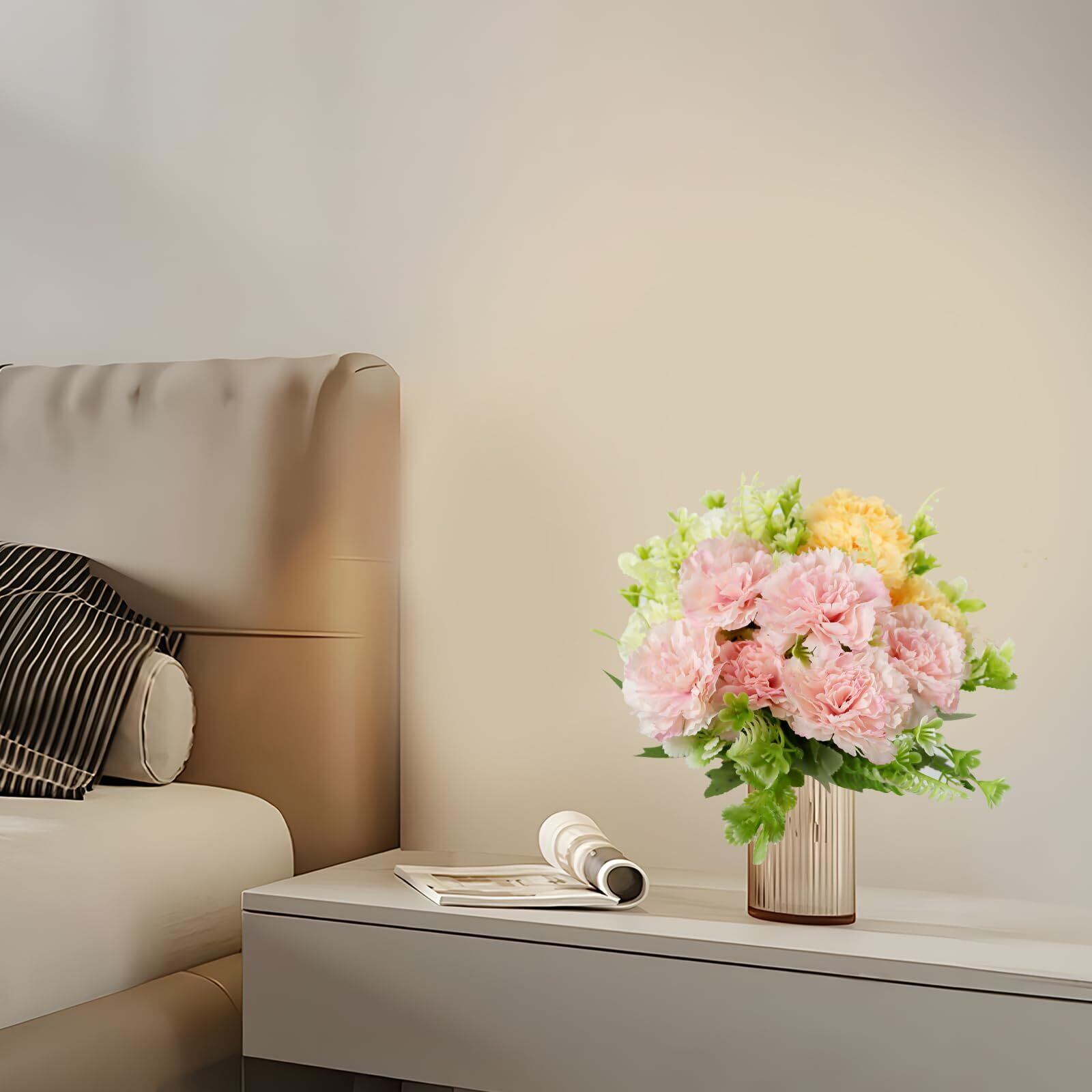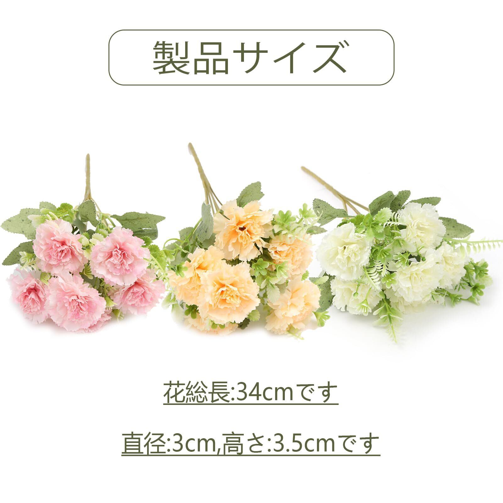 【本物そっくり】:高品質のシルク布を採用し、花びらは滑らかでソフト触感、花びらも葉もお鮮やかな色を持ち、品質は良いです。遠目から見れば、まるで本物のカーネーションのように生き生き咲いています。