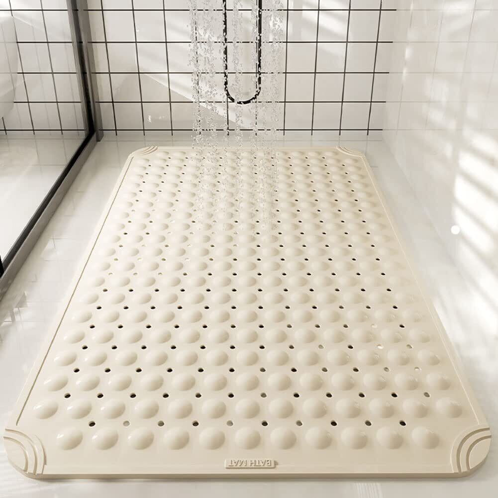 TUYOBI バスマット お風呂 浴室内 滑り止め 吸盤付き 介護用 浴槽内 防カビ 抗菌 すのこ 転倒防止 速乾 TPE製 マッサージ機能 清潔 大判 ベージュ 80*120CM