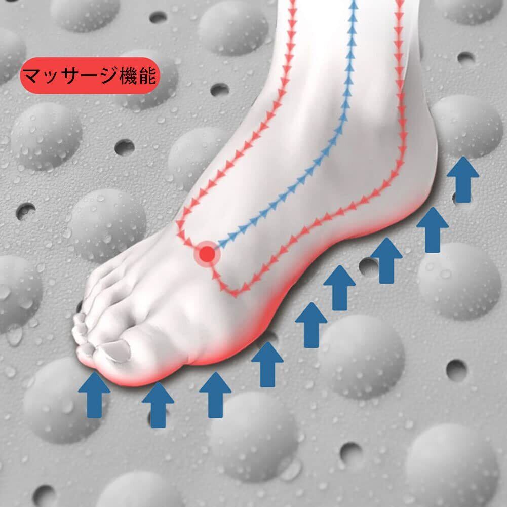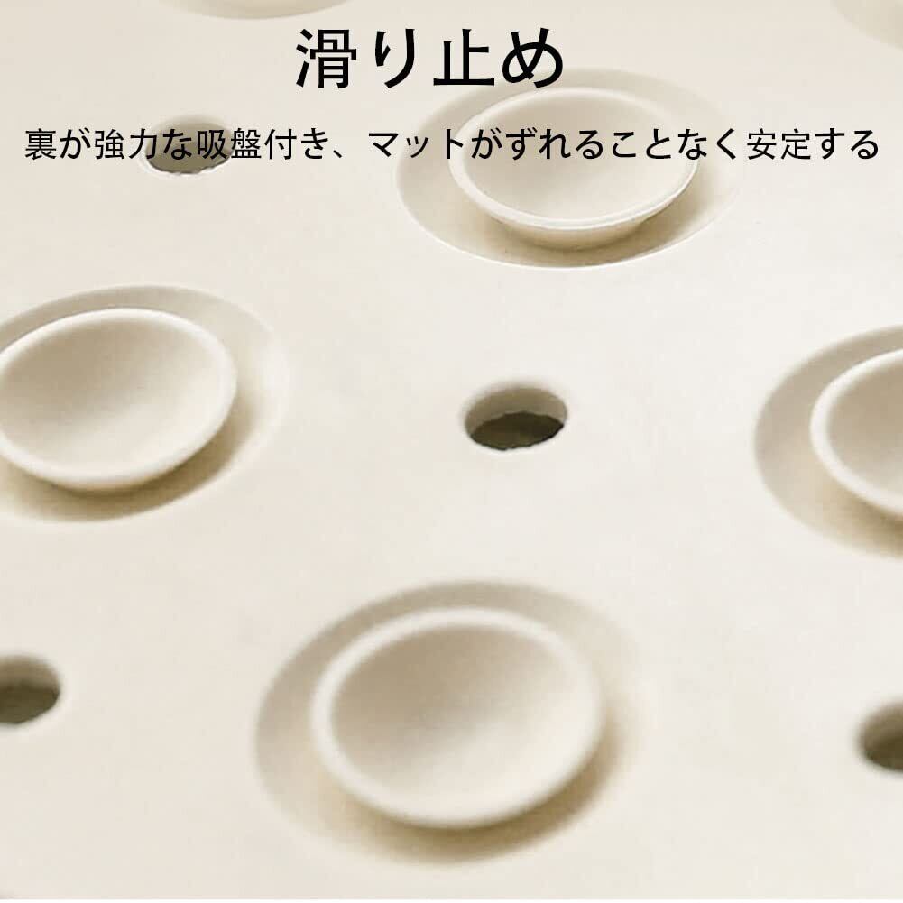 滑り止め:表面が滑り防止のため、凸凹加工が施してあり、乗っても滑りにくくなっています。裏が強力な吸盤付き、マットがずれることなく安定します。