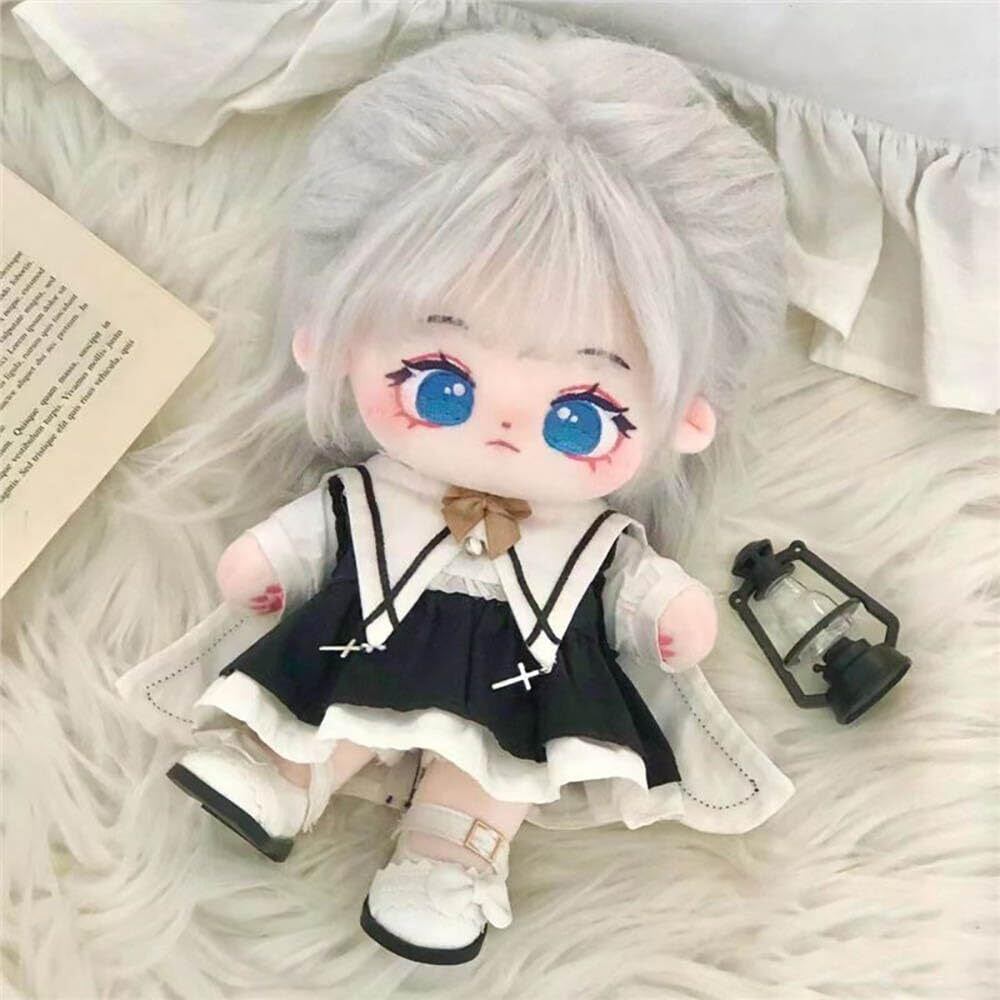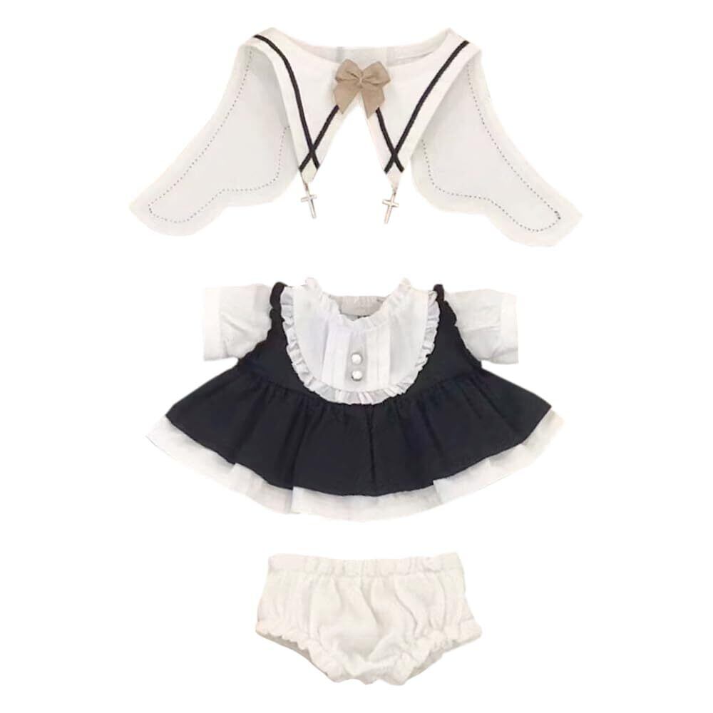 niannyyhouse 20cm ぬいぐるみ 服 ブラック ワンピース スカーフ ショーツ 綿人形 着せ替え ドールアクセサリー