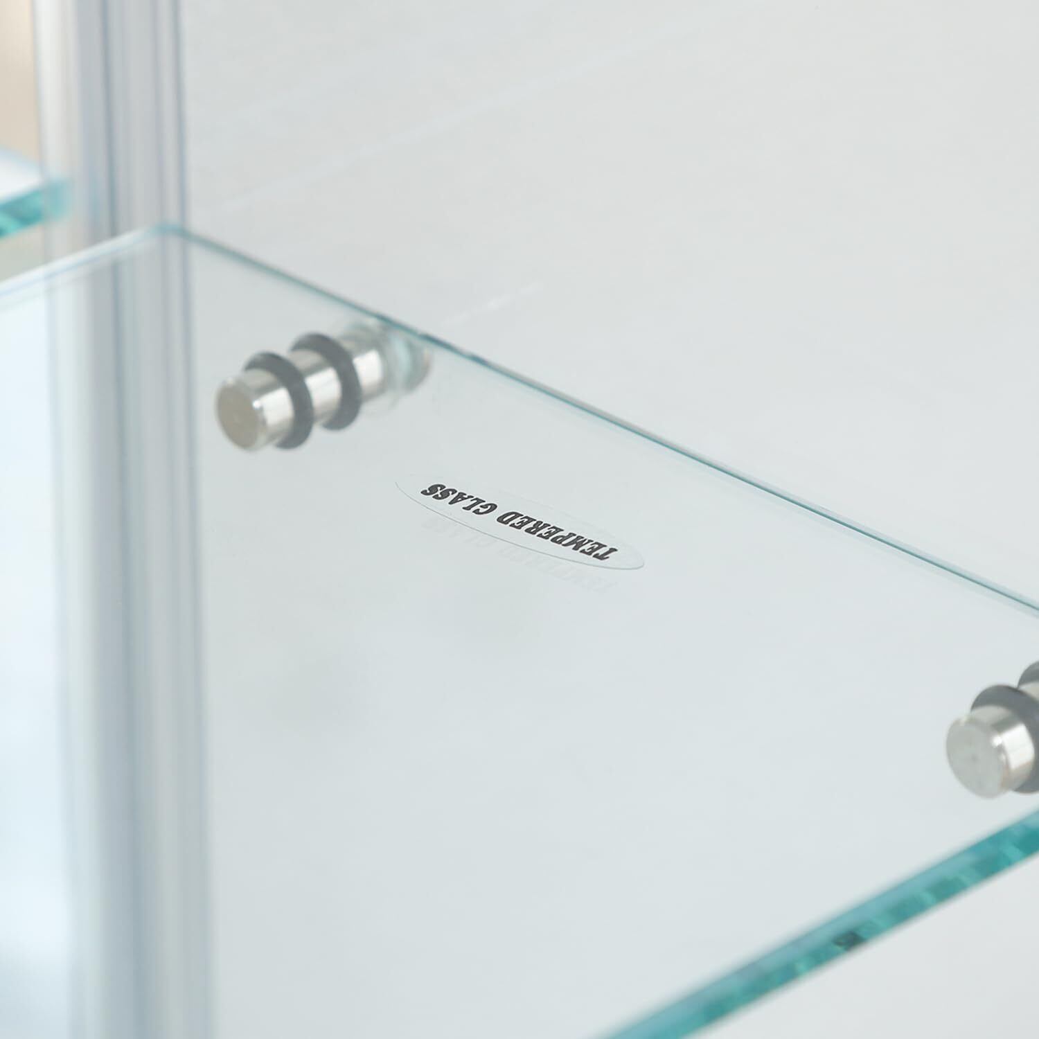 材質:構造部材(天板,地板):プリント紙化粧繊維板/構造部材(側板,棚板,扉板):強化ガラス/構造部材(背面ミラー):ガラス(飛散防止フィルム加工)