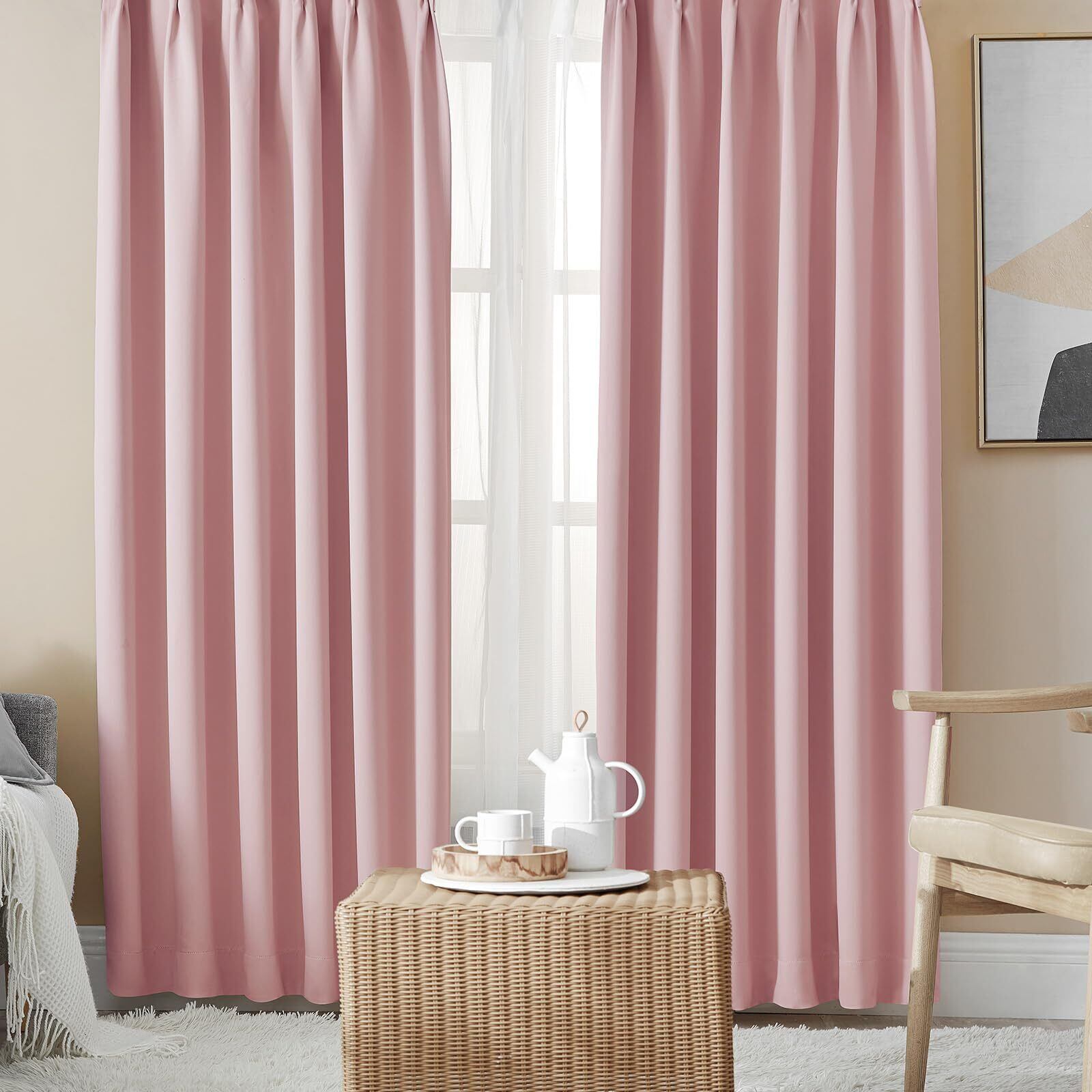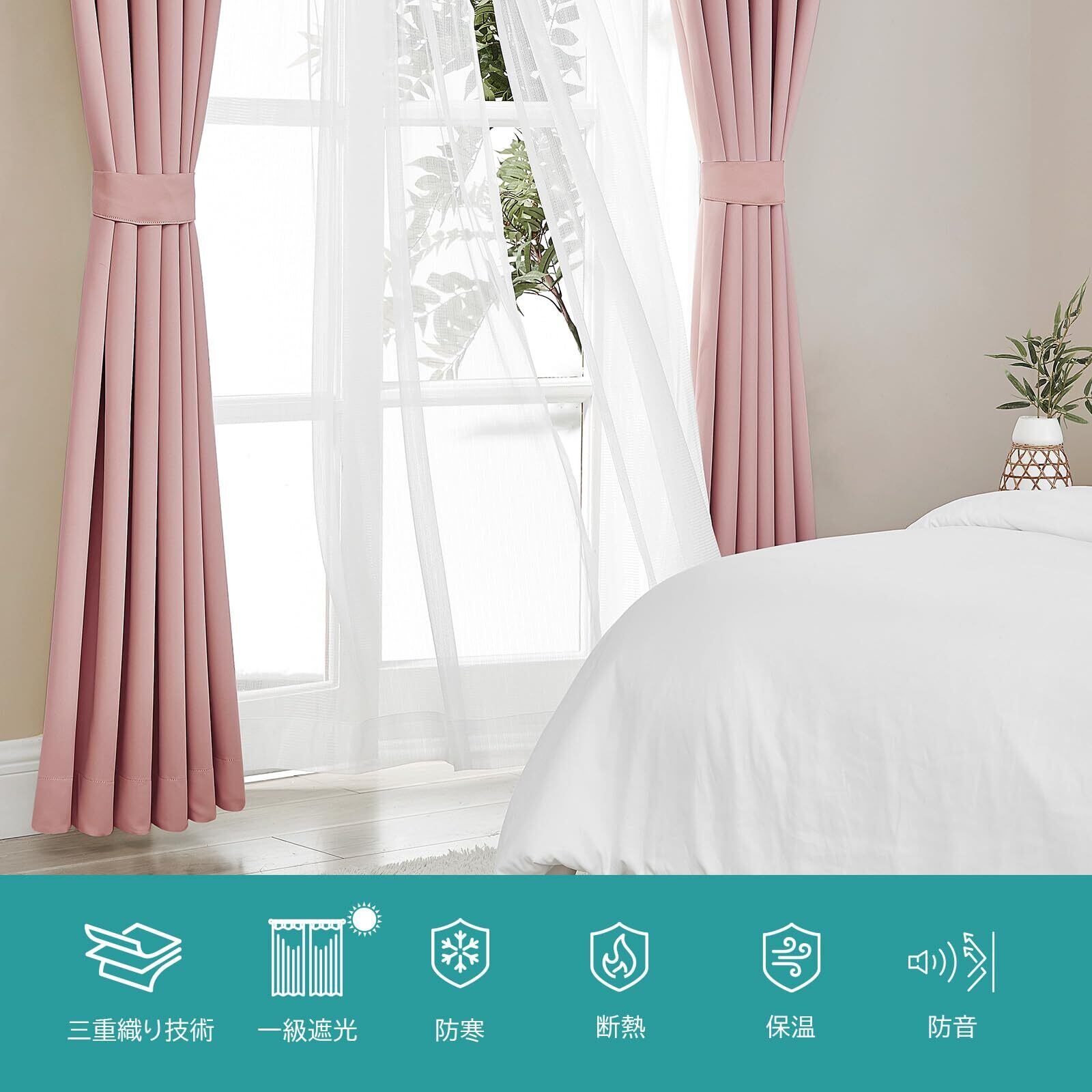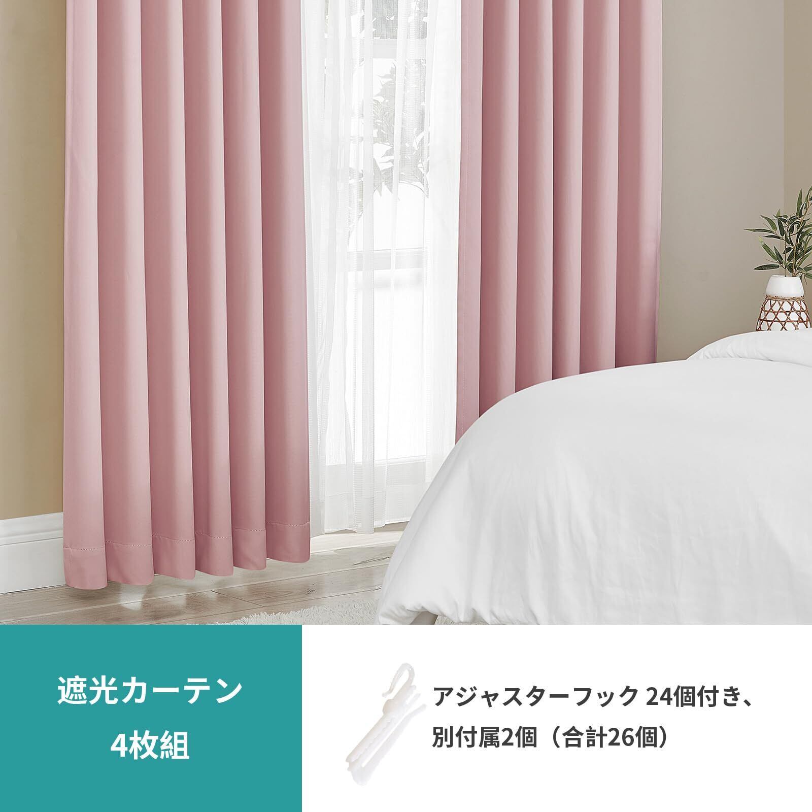 Hansleep カーテン 1級遮光 4枚組 コーラルピンク 幅100cm丈135cm UVカット 断熱 防寒 防音 省エネ 厚手 無地 おしゃれ カーテンセット 洗える 寝室 リビング用 (ドレープカーテン2枚・レースカーテン2枚)