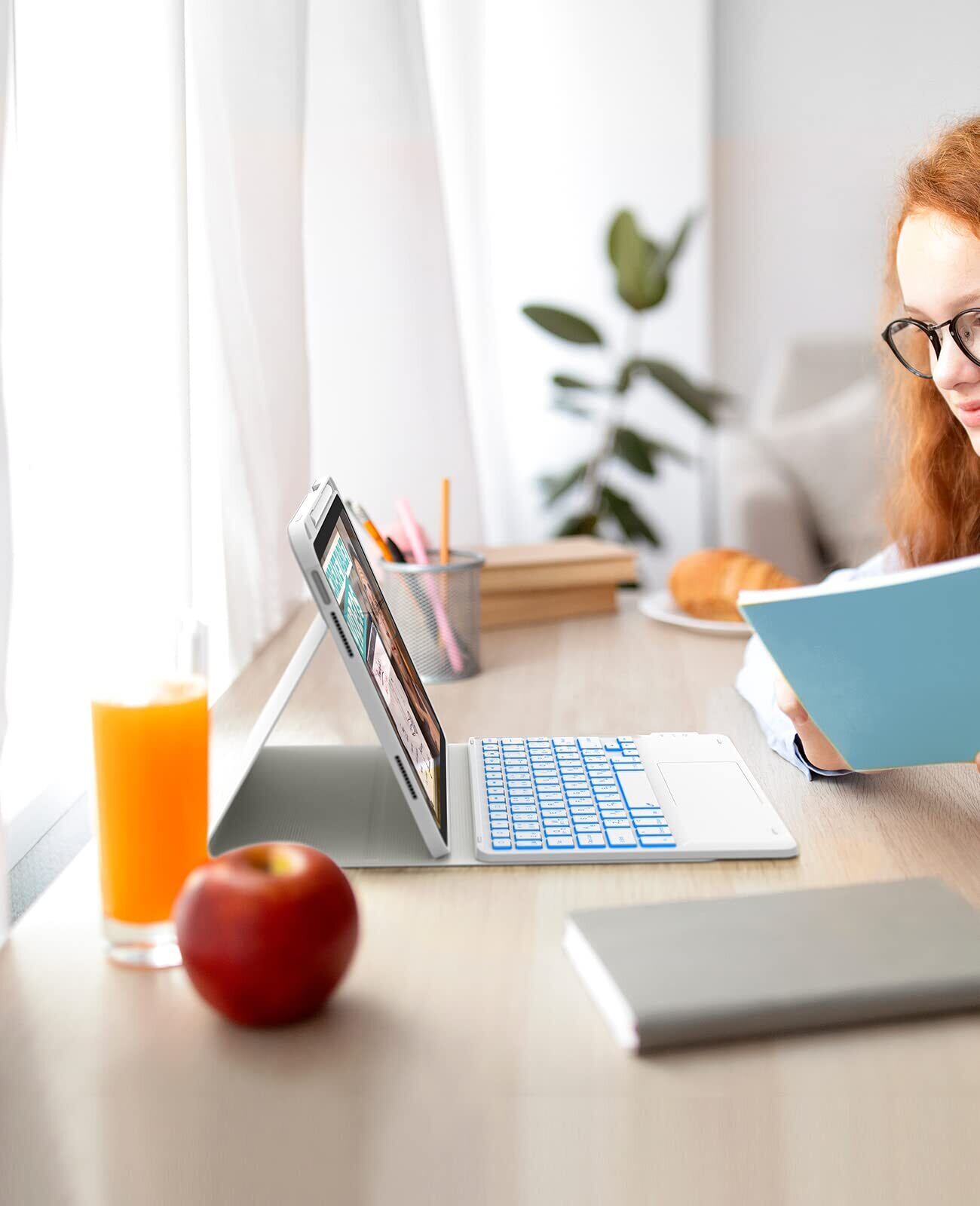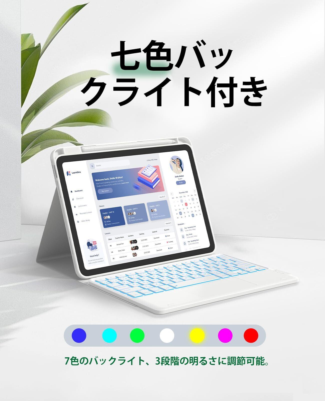 【7色バックライト付き】このアイパッド キーボードケースは7色LEDバックライトを調整できます。気分に合わせていつでもどこでも自由に読書、閲覧、作業ができます。暗い場所でもバックライト付きBluetooth キーボードを使用可能でき、快適なタイピング体験をもたらします。
