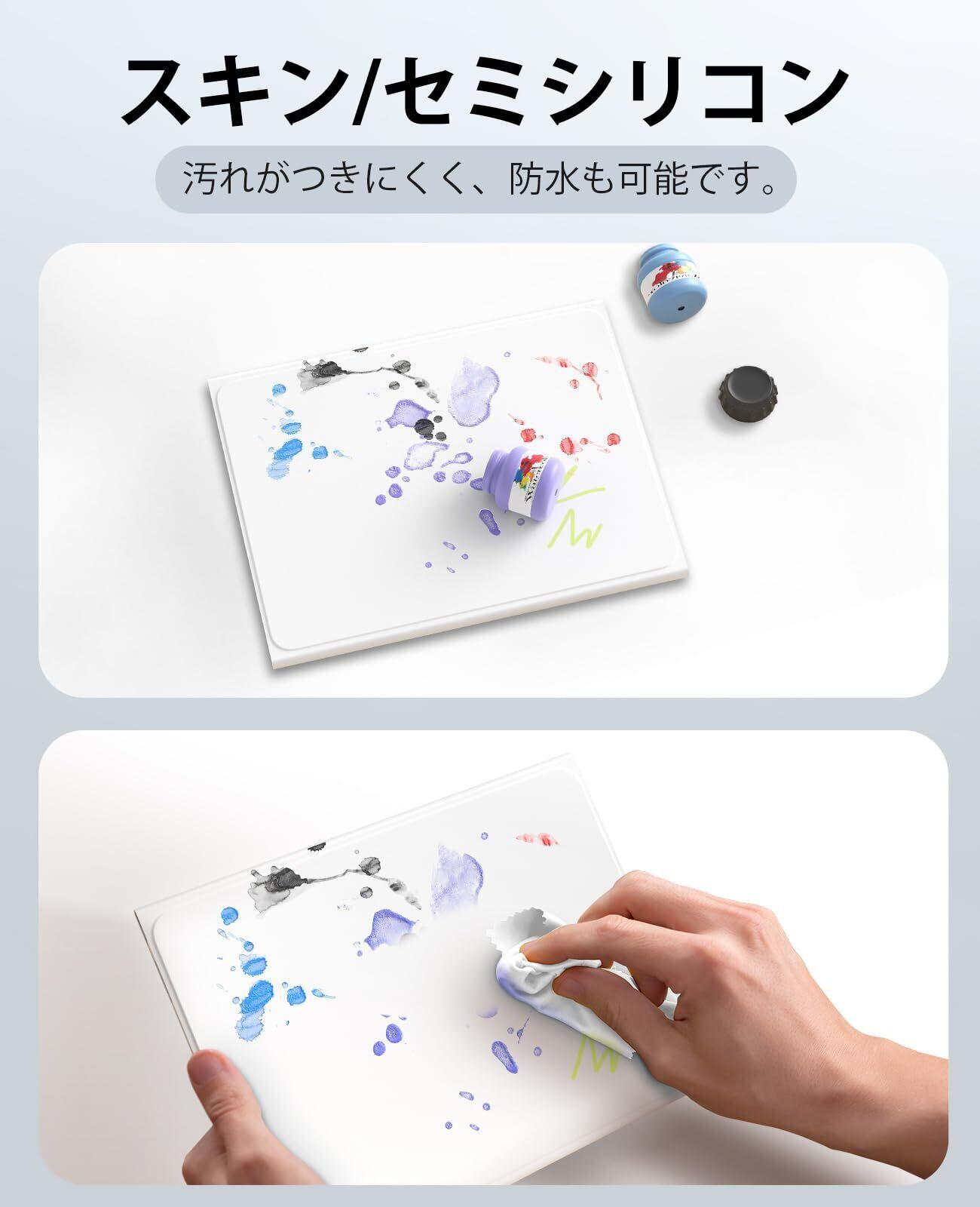 【セミシリコン材質のケース】このケースはセミシリコンの材質を利用するので、誤ってこぼしたインク、コーヒー、食品の汚れなどでも、簡単に5分以内に拭くことができ、防汚の優れた品質を達成するために、抗黄、カバーは滑らかな保つことができます。*iPadホルスターとキーボードの間の磁気吸引力は3.92ニュートンカ