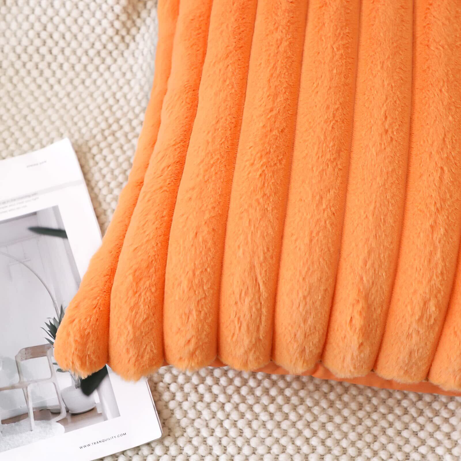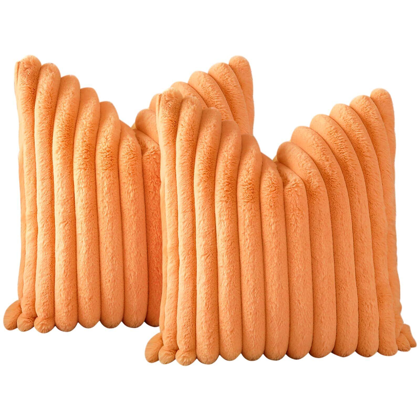 Otostar クッションカバー 45×45cm 2枚セット 北欧 おしゃれ 可愛い ファー フェイクファー ベルベット ふわふわ もふもふ 柔らかい もこもこ ストライプ 立体的 インテリア ソファー用クッションカバー ソファ背当て くっしょんかばー 装飾枕カバー 座布団カバー (45x45, オレンジ)