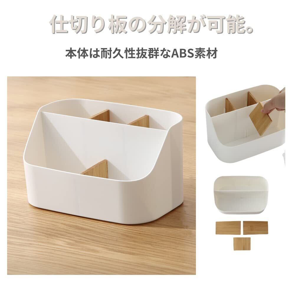 耐久性抜群のABS素材なので長期間ご使用いただけます。コンパクトでも圧倒的な収納力を誇るので机やテーブル上の雑多なものを収納し、いつでも周囲を綺麗に保てます。仕切り板は分解可能で洗うこともできます。
