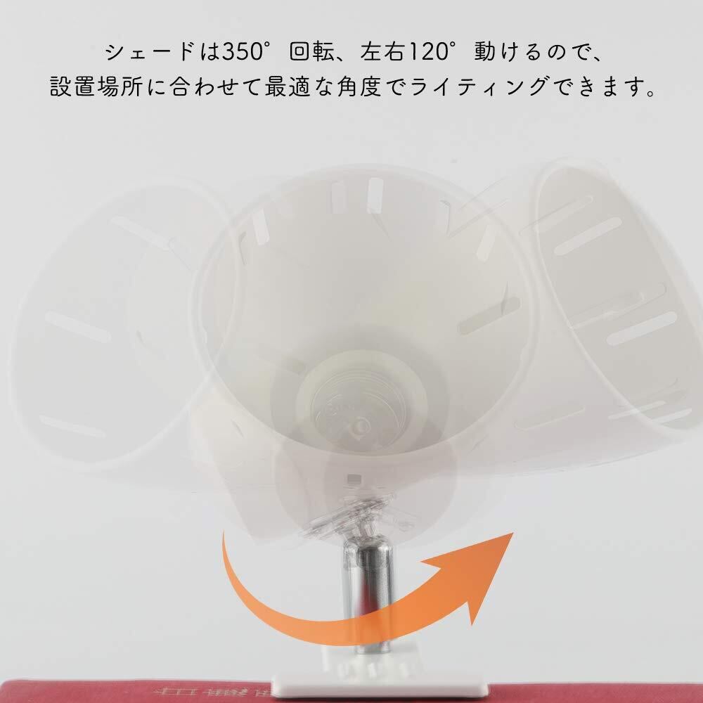 【照射角度自由】:シェードは350°回転、左右120°動けるので、設置場所に合わせて最適な角度でライティングできます。