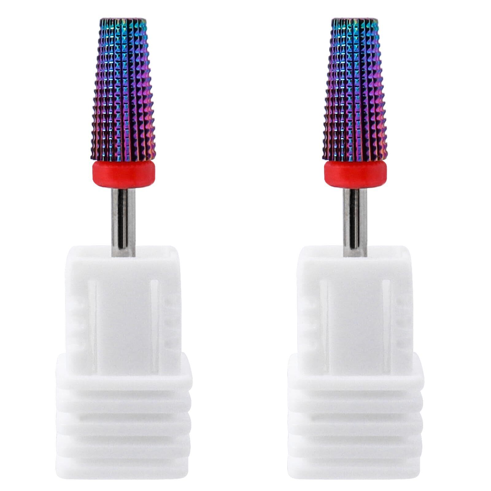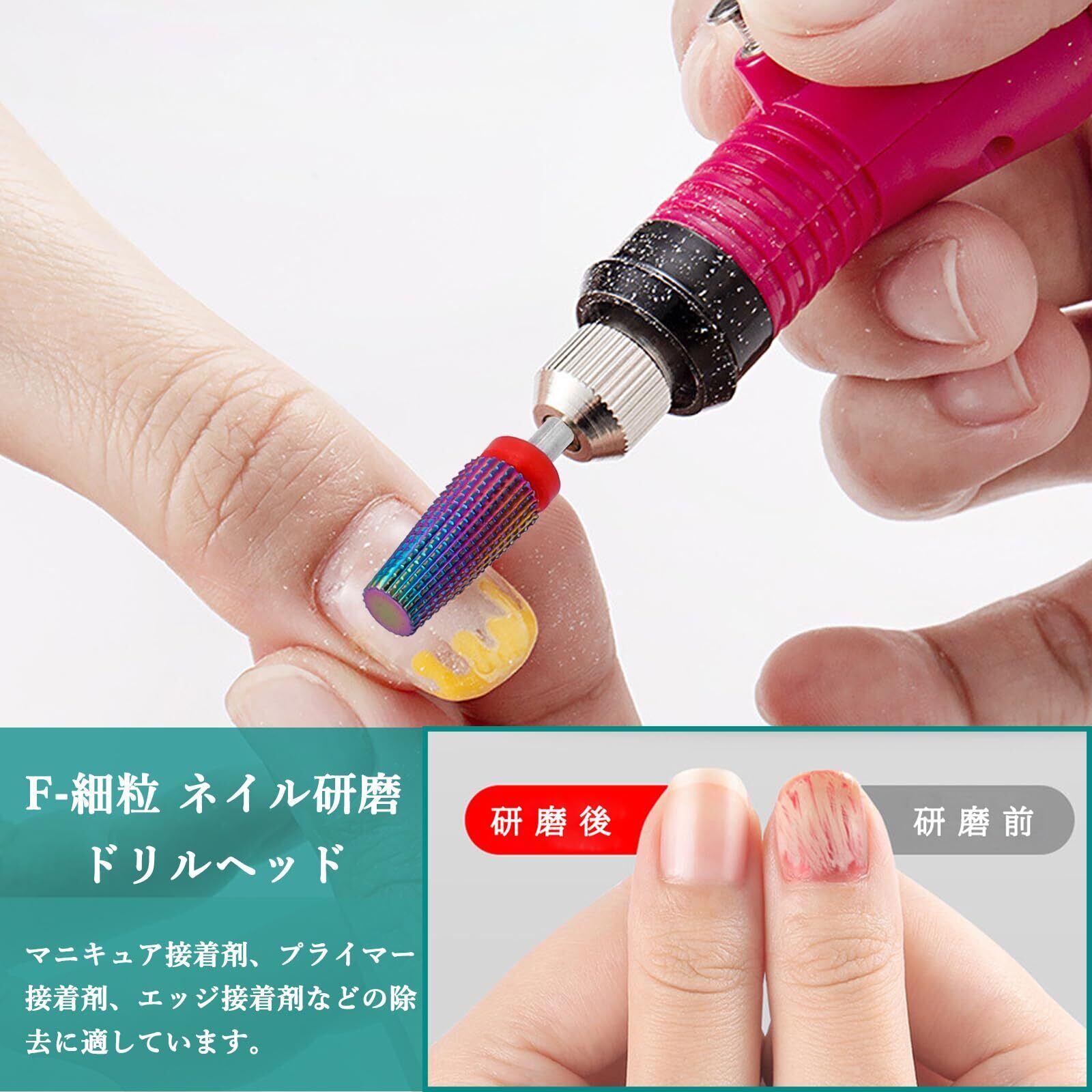 【F-細粒 ネイル研磨ドリルヘッド】マニキュア接着剤、プライマー接着剤、エッジ接着剤などの除去に適しています。セット内容:2個ネイルドリルビット、シャンク: 2.35mm。
