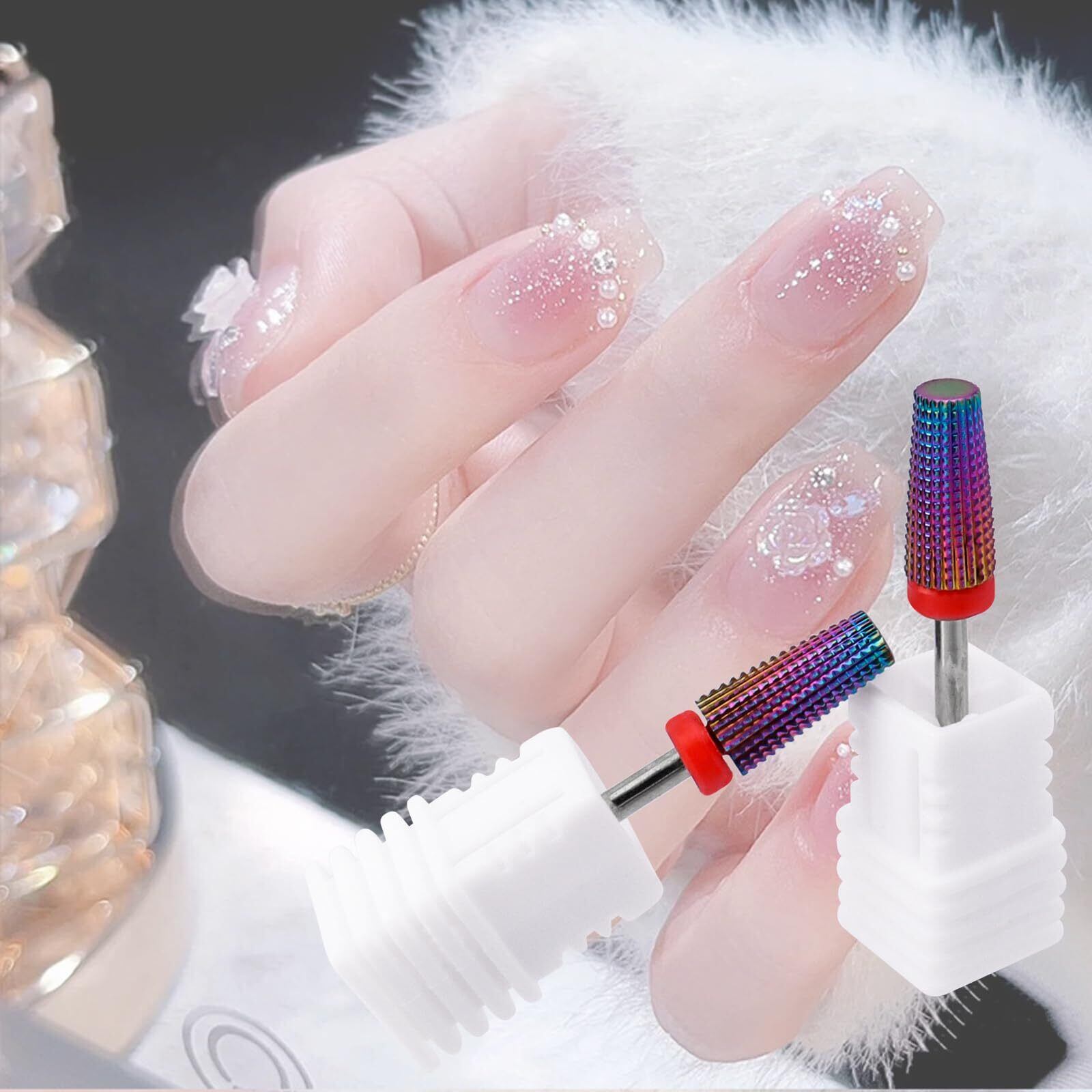 【炭化タングステン素材】研磨された滑らかなアクリルジェルネイル、厚いエクステンションネイル、ビルダージェルネイル、天然爪を除去するのに十分な強度と鋭利さを備えています。 高いネイルビットが耐熱性でお肌を守ります。