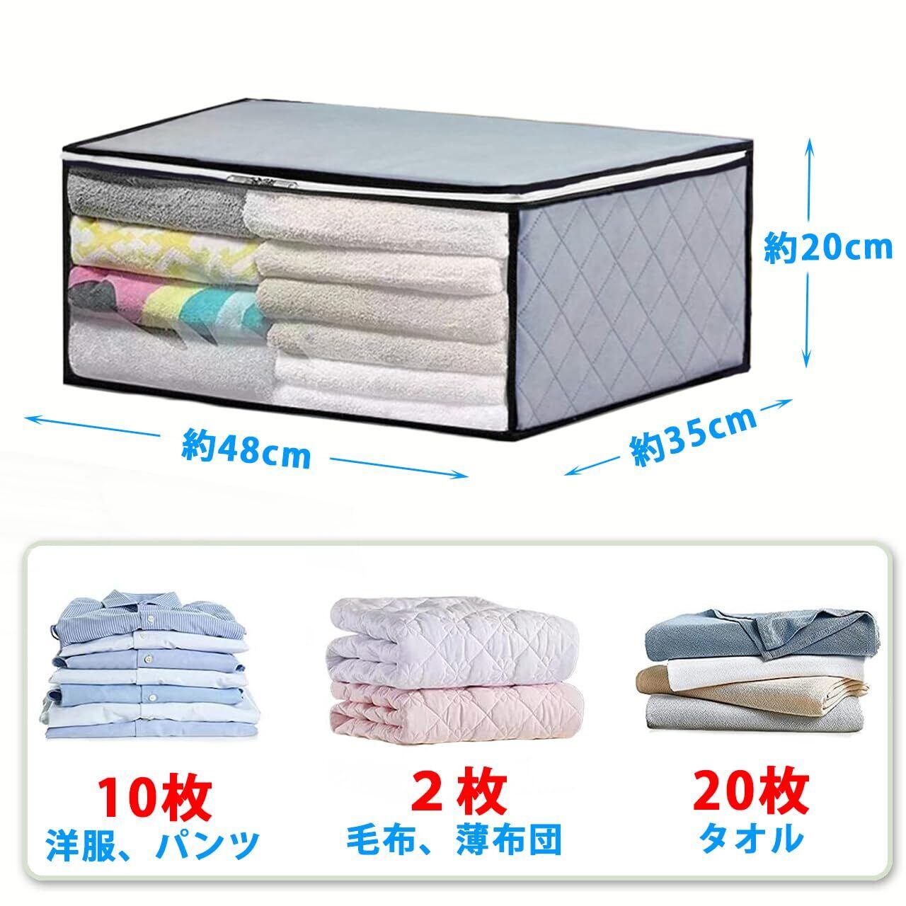 【三枚セットでお得】この収納袋は3枚セットです。サイズはそれぞれ48×35×20cm、大容量設計で衣類や寝具、タオルなどをまとめて整理整頓でき、ご家庭での衣替え等で活躍します。