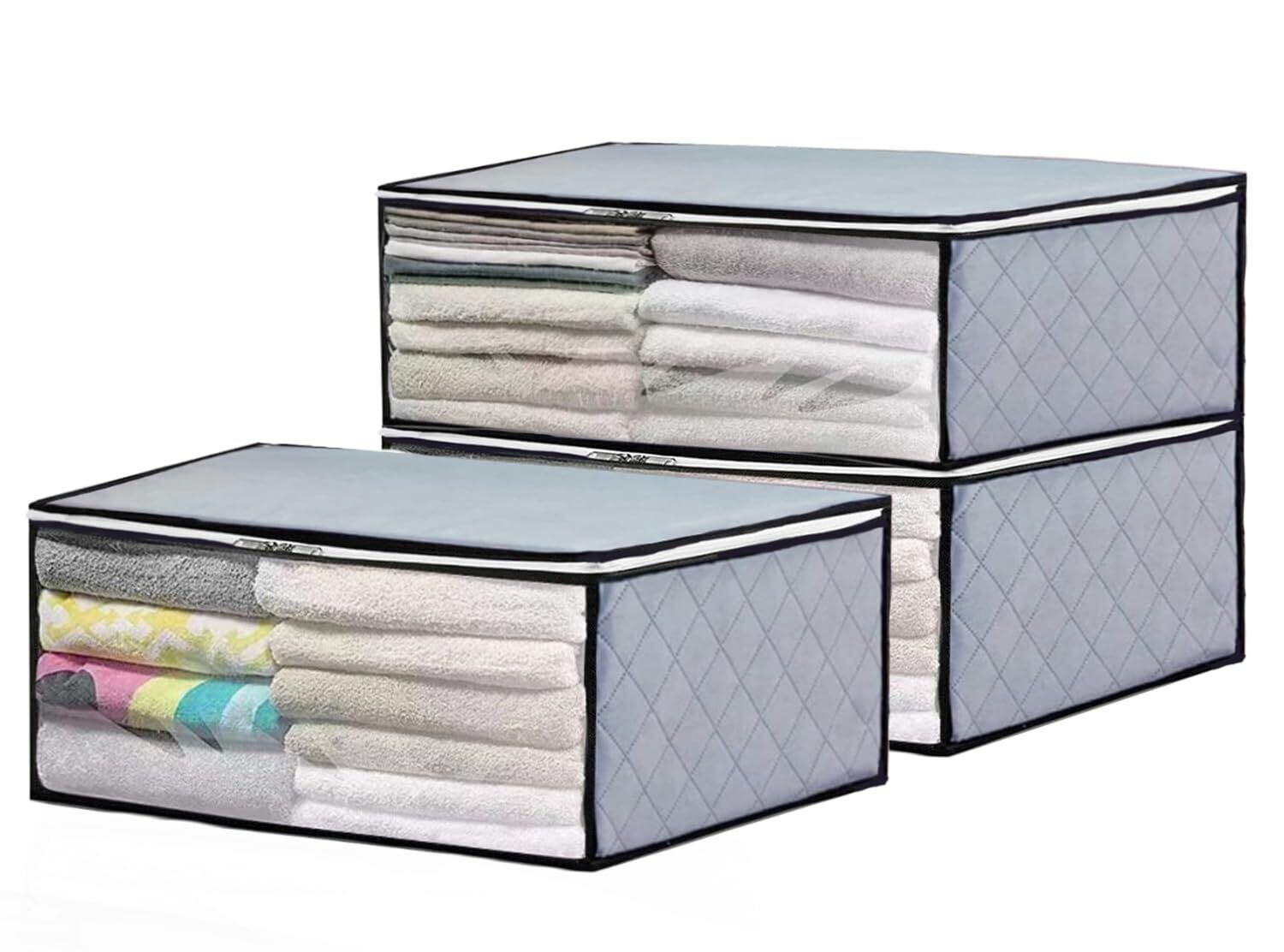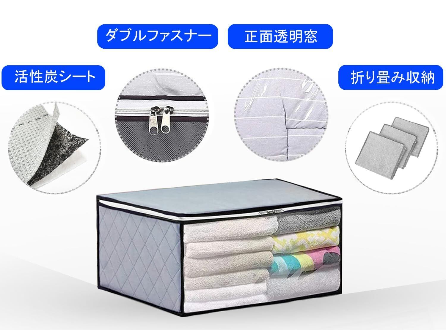 3枚セット 収納ケース 活性炭消臭 透明窓付き 通気性の良い 不織布製 消臭保管 洋服 収納ボックス 衣装ケース 収納袋 クローゼット