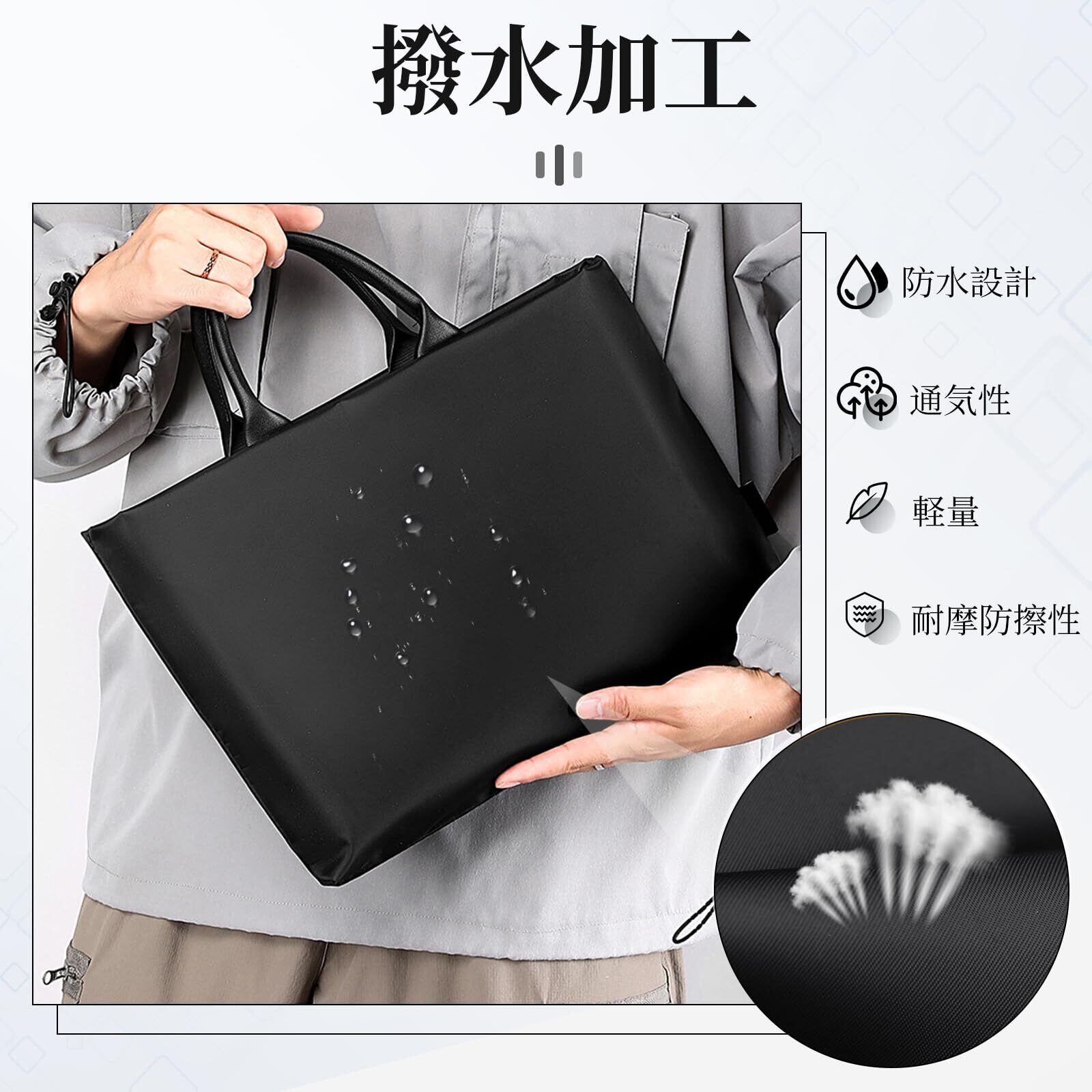 【撥水加工】ビジネスバッグの表地はオックスフォード生地を使用しており、撥水性に優れ、突然の雨の日でも中身を守ります。防水性に優れているだけでなく、耐摩耗防擦性にも優れています。