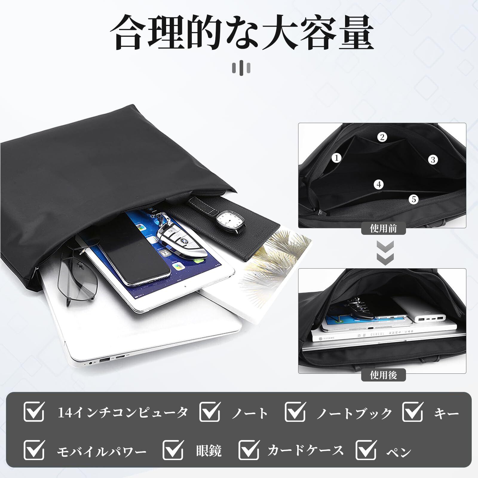 【適用シーン 】どんな場合でも、バッグはシャツ、洋服、スーツなどと相性して、就活/通勤/営業/出張/旅行/デート/カラオケ/ショッピングなどの様々なシーンでも活躍できます。