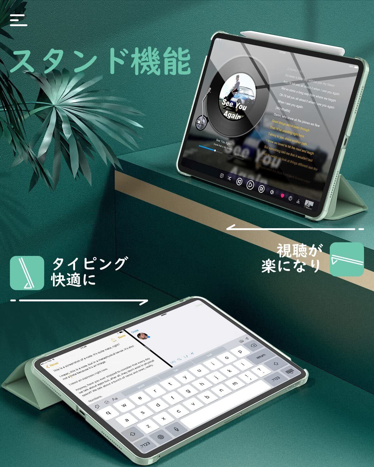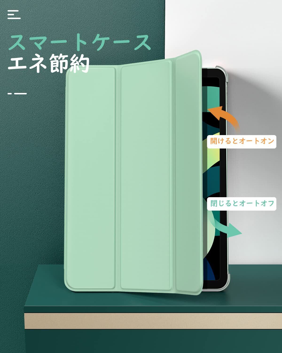 iPad Air 11インチ M3/M2 ケース 2025/2024 Dadanism iPad Air 11インチ/Air 5 Air 4 10.9インチ カバー Air 11 第7世代/第6世代 オートスリープ 三つ折り スタンドケース PU+PC 半透明 PencilPro/第2世代ワイヤレス充電 Green