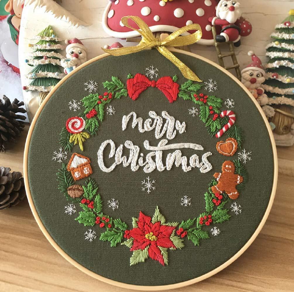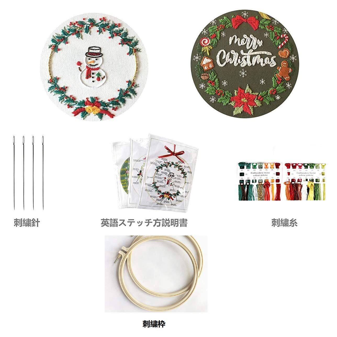 刺繍キット 刺しゅう クリスマス飾り クロスステッチキット 初心者向け DIY 手作り 刺繍枠2本 内径約20CM 刺繍糸 刺繍用布2枚 刺繍工具 初心者学ぶ