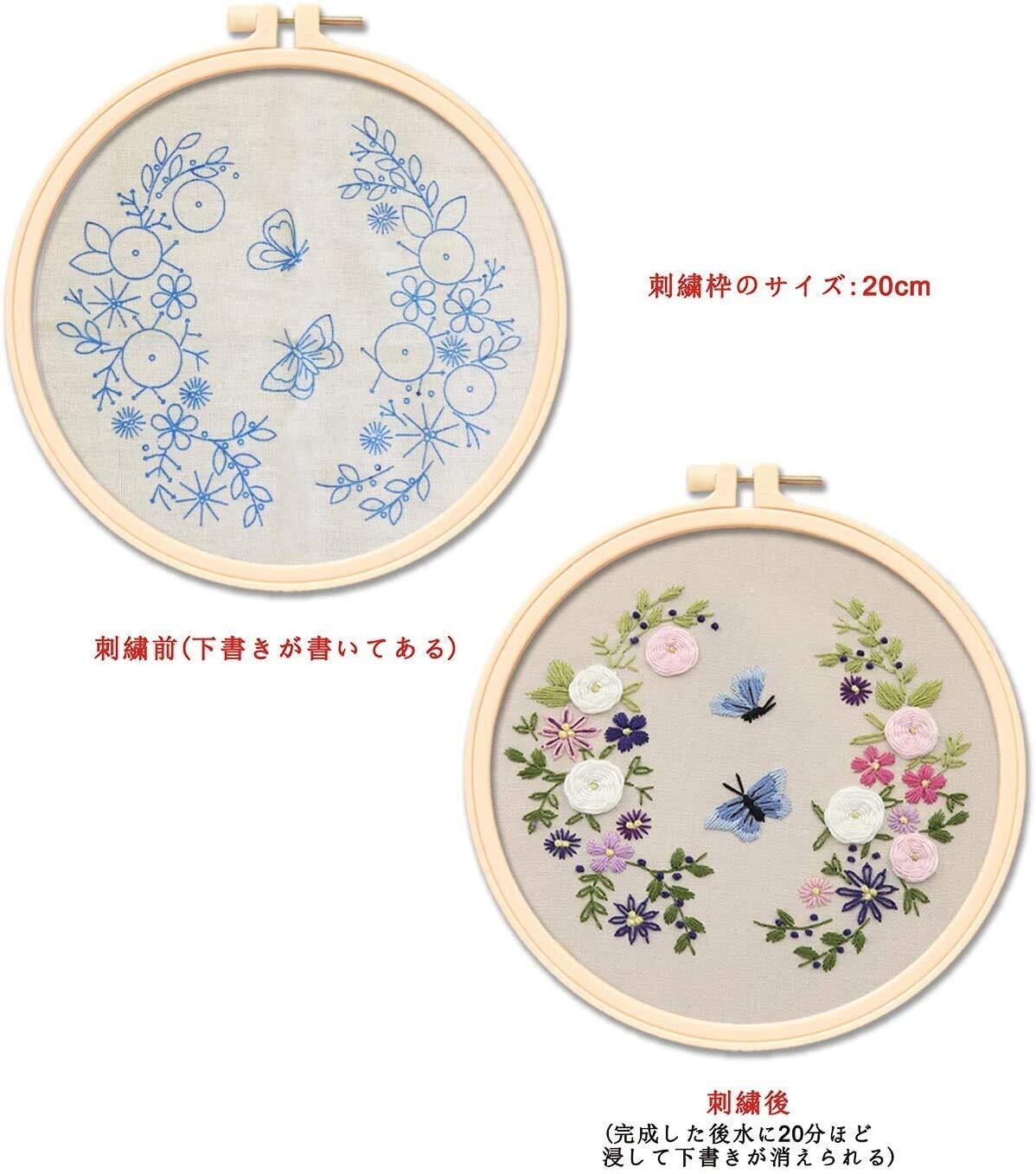 【使いやすい】:刺繍布の上には花色のパターンがあって、取扱図案説明書もあって、初心者でも刺繍作品を作成することができます。(ご注意:刺繍模様は特殊なインクで作られ、水に触れると消えますので、刺繍が終了するまで水に触れないでください。)