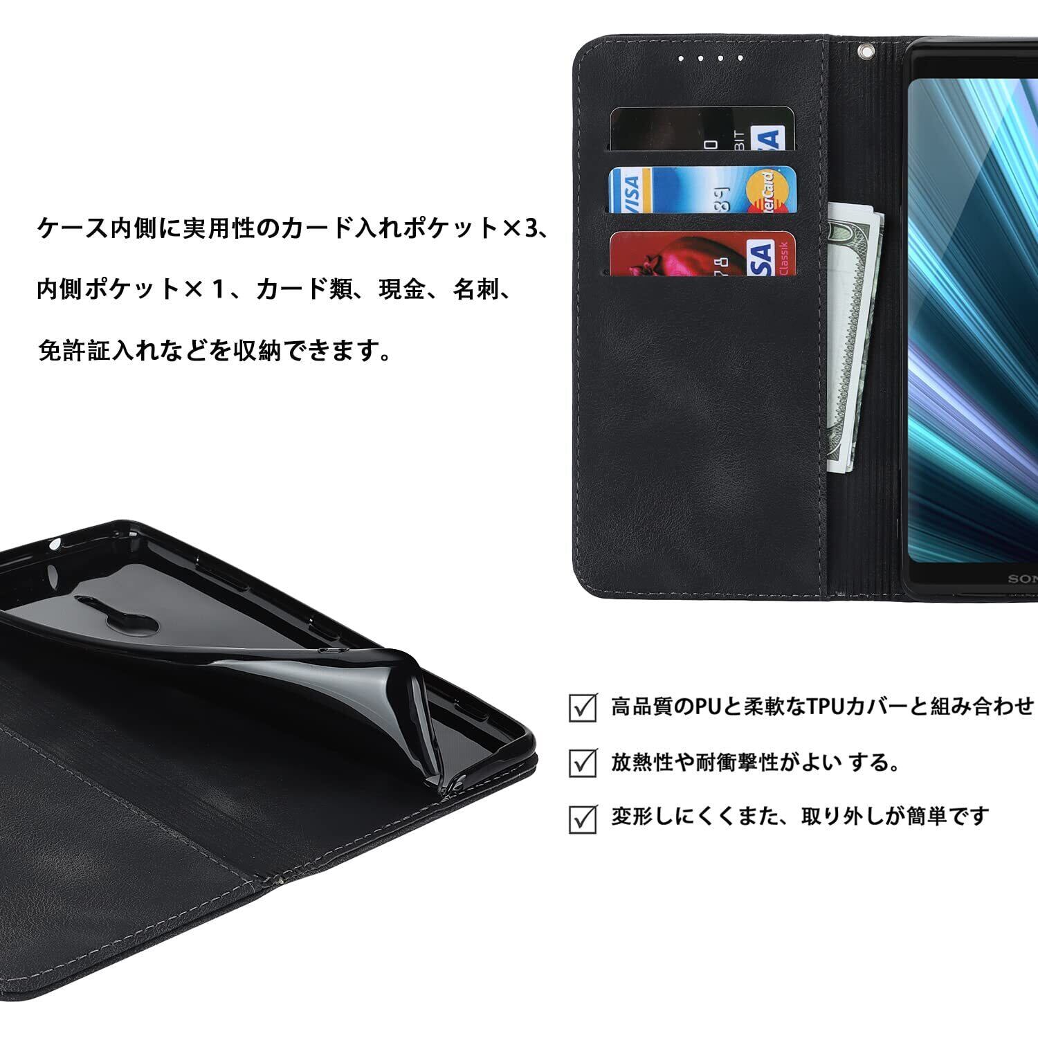 【収納機能】Xperia XZ3ケース内側に実用性のカード入れポケット×3、内側ポケット×1、カード類、現金、名刺、免許証入れなどを収納でき、通勤も通学にも楽々タイプです。内蔵マグネットの機能を最大限に発揮させ、カードの消磁を防ぐために、カードスロットに2枚のカードをセットすることを推奨します。