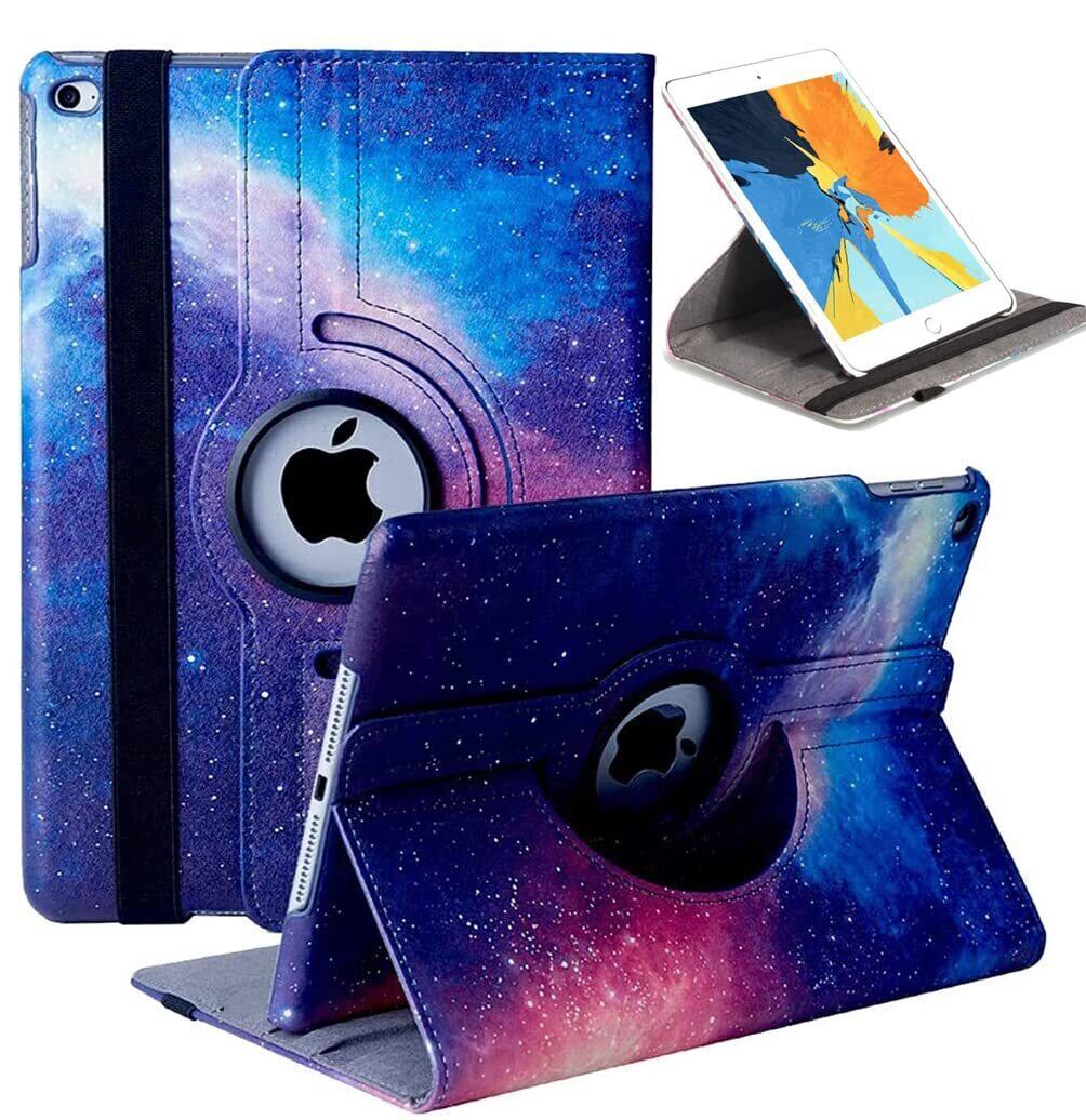 iPad Mini5 ケース 2019/ iPad Mini4 ケース 7.9インチタブレットケース 軽量 手帳型 360度回転スタンド オートスリープ機能 2段階調節可能 固定バンド 脱落防止耐衝撃 耐久性 おしゃれデニム生地 (星空)