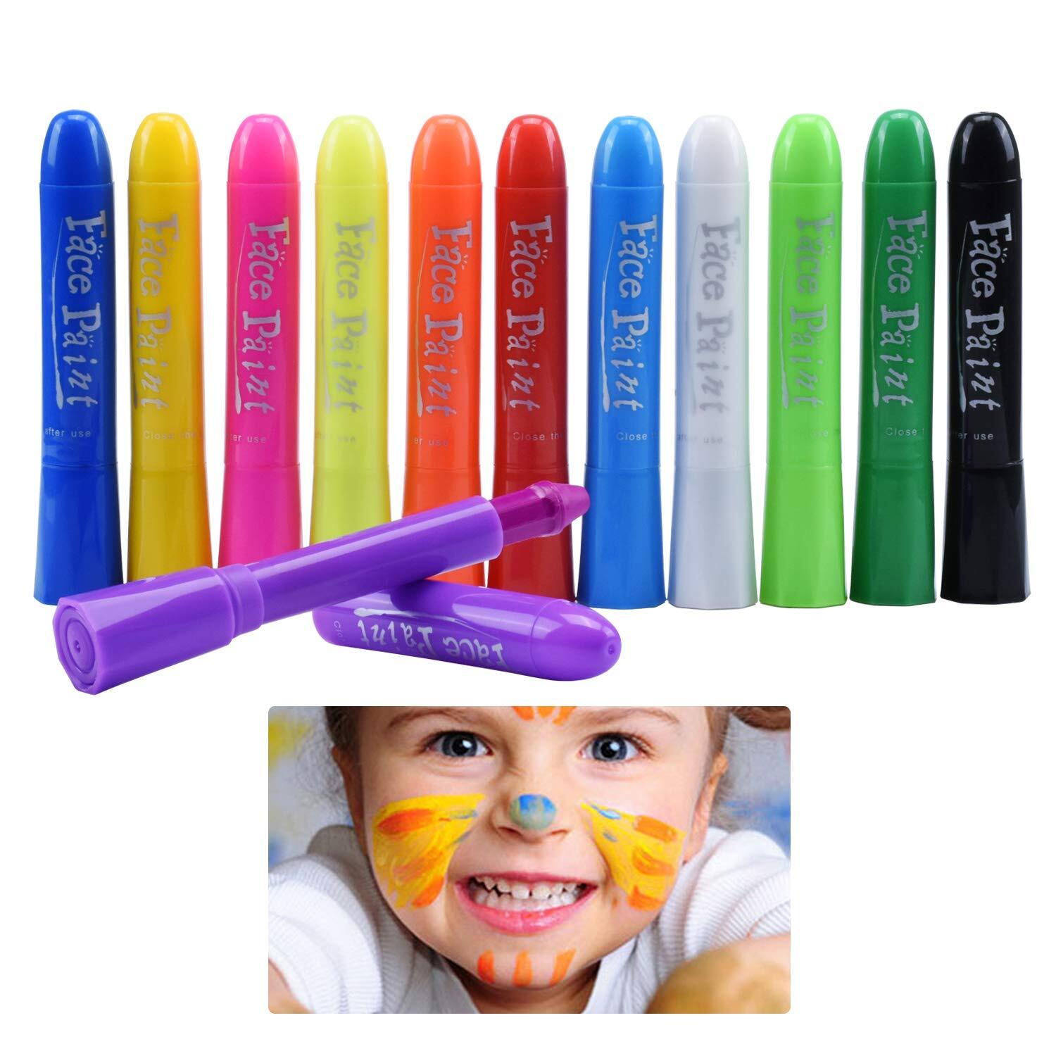 フェイスペイント ボディペイント 全12色 クレヨン 顔ペン マタニティペイント 簡単水洗 無毒 安全 クリスマス ハロウィン コスプレ 小道具 イベンド 祭り スポーツ応援 (12色セット)