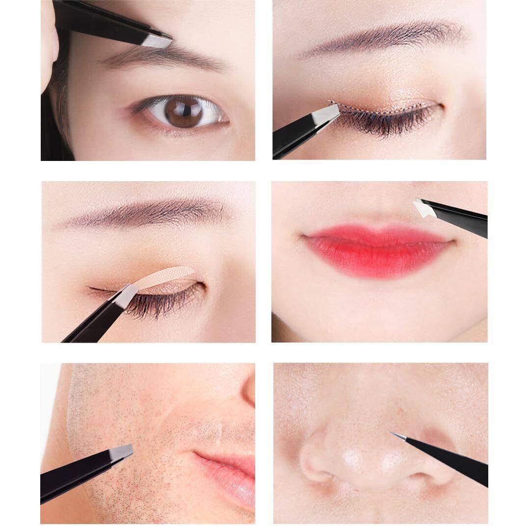 【多用途】さまざまなニーズを満たす平らな、角度の付いた、尖った、斜めのピンセット。 眉、鼻毛、髪、顔に適しています。