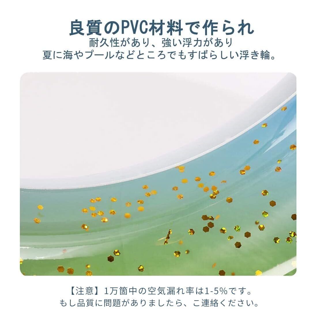 良質のPVC材料で作られ、耐久性があり、強い浮力があり,夏に海やプールなどところでもキラキラして、すばらしい浮き輪。