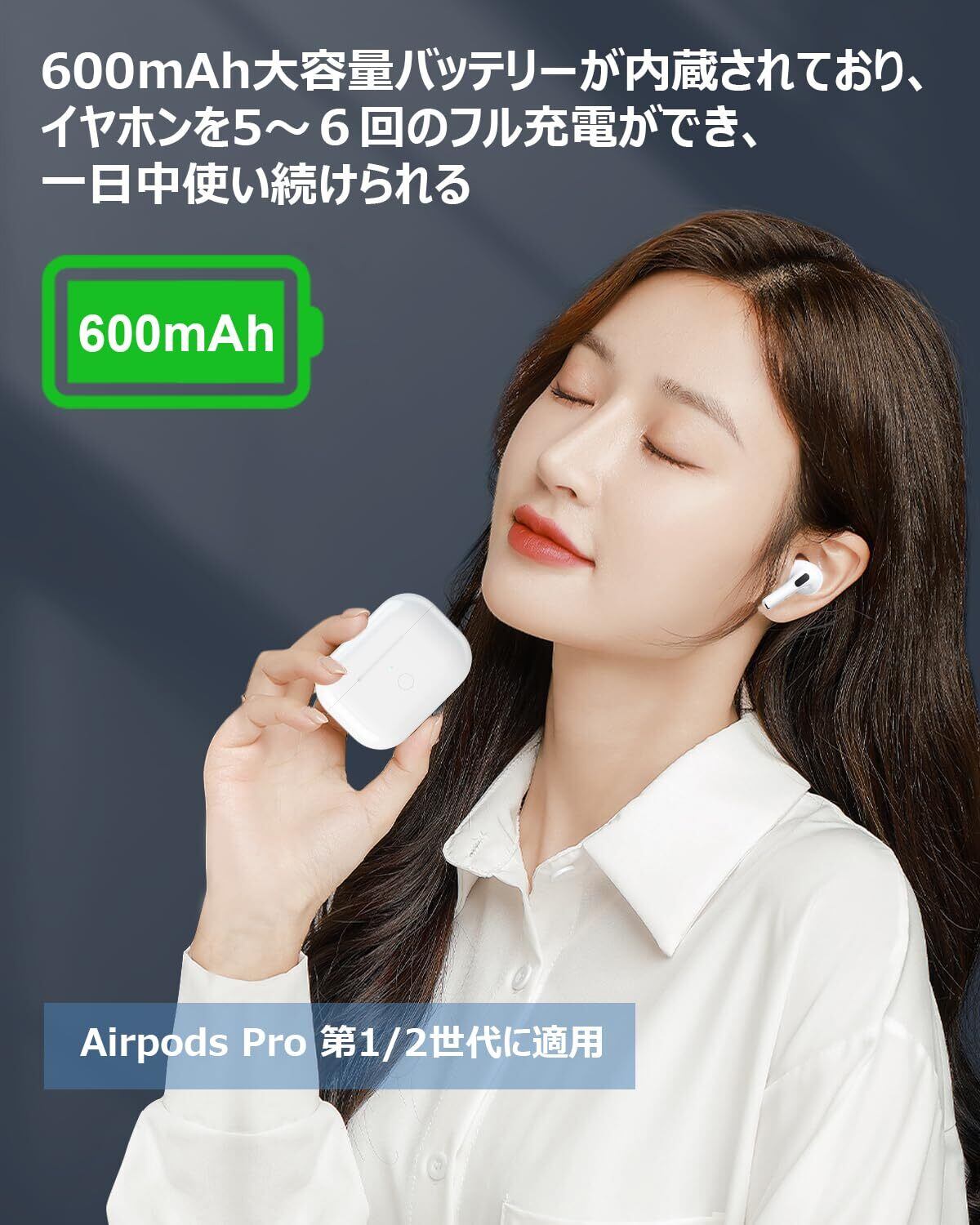 【使いやすい】高品質の600mAh大容量バッテリーを内蔵して、イヤホンを5回の充電ができ、最大32時間の連続使用が可能で、出先で長時間使用することを想定しても十分快適に使用できます。ご注意:純正品の充電ケースではありません、購入前にご了承ください。