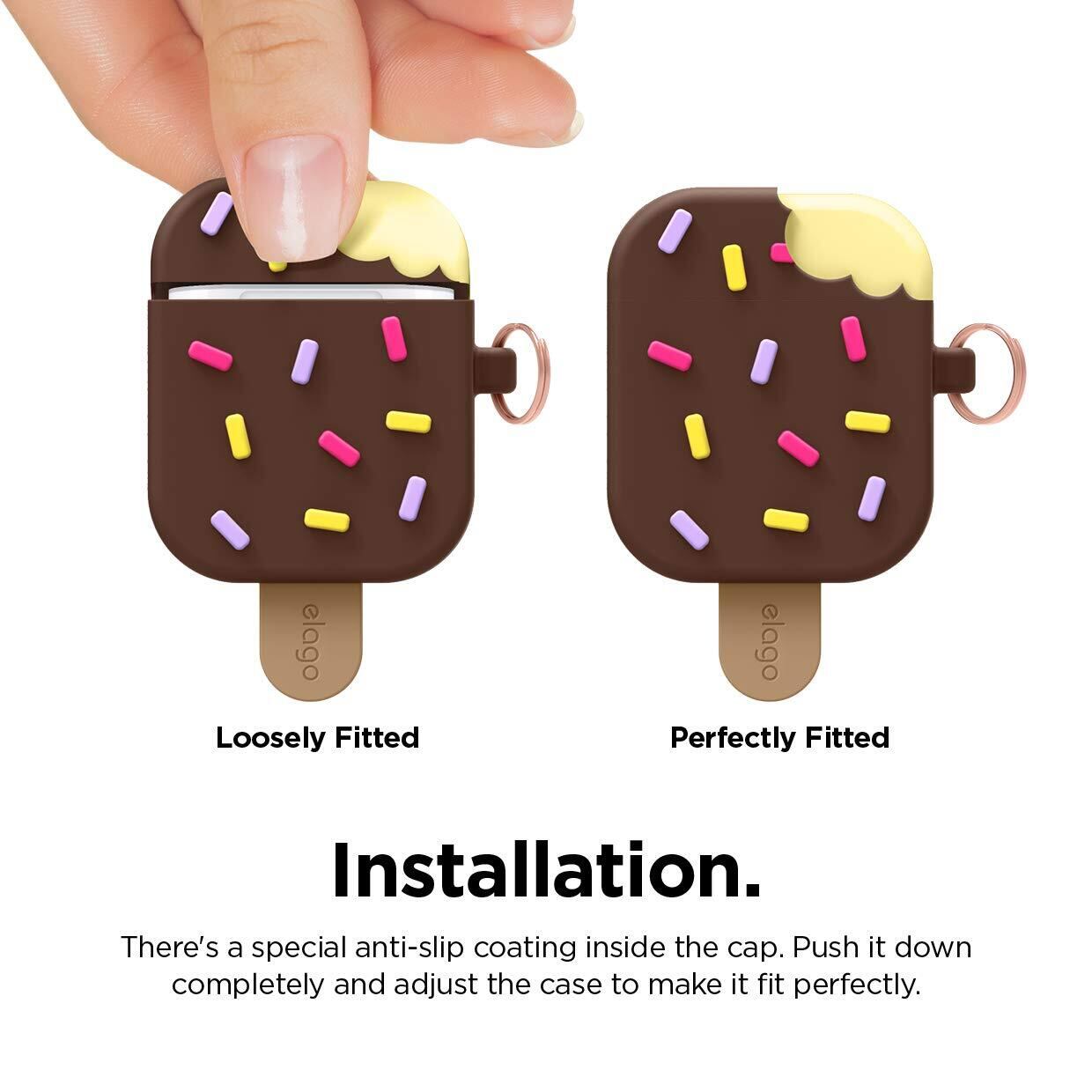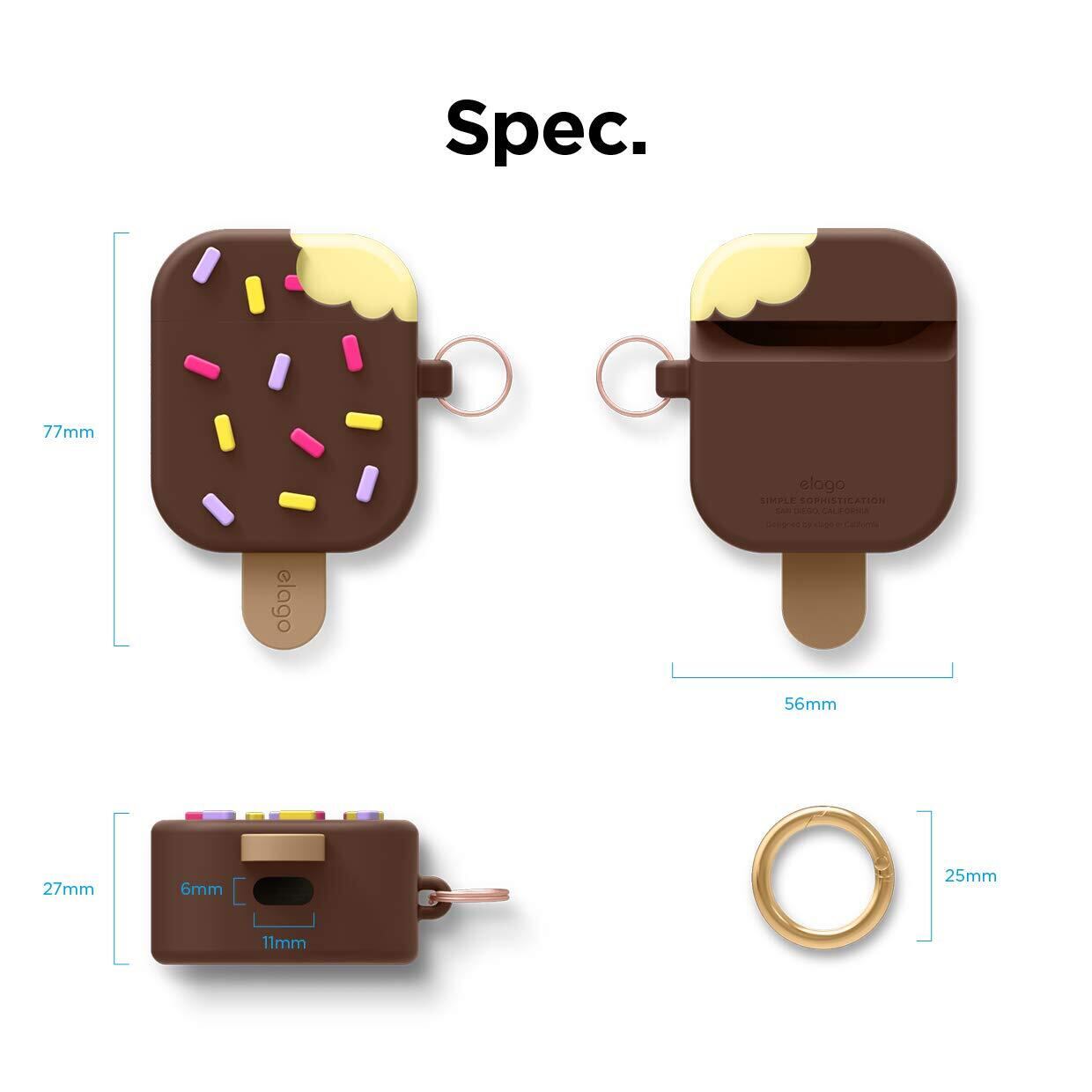【elago】 AirPods 対応 ケース カラビナ 付き シリコン カバー 耐衝撃 衝撃 吸収 ケースカバー 耐衝撃 傷防止 落下防止 おしゃれ 保護 アクセサリー [ Apple AirPods1 / AirPods2 Wireless Charging Case エアーポッズ 対応 ] ICE CREAM ダークブラウン