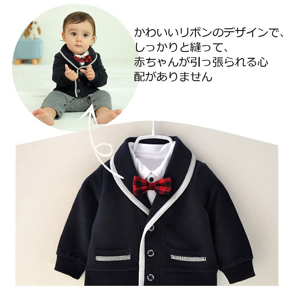 [Haoerwu] ベビー服 長袖 ロンパース 洋装フォーマル 厚手 春 秋 冬 セレモニー 結婚式服 前開き 男の子 綿 カバーオール ブラック 66 73 80 90