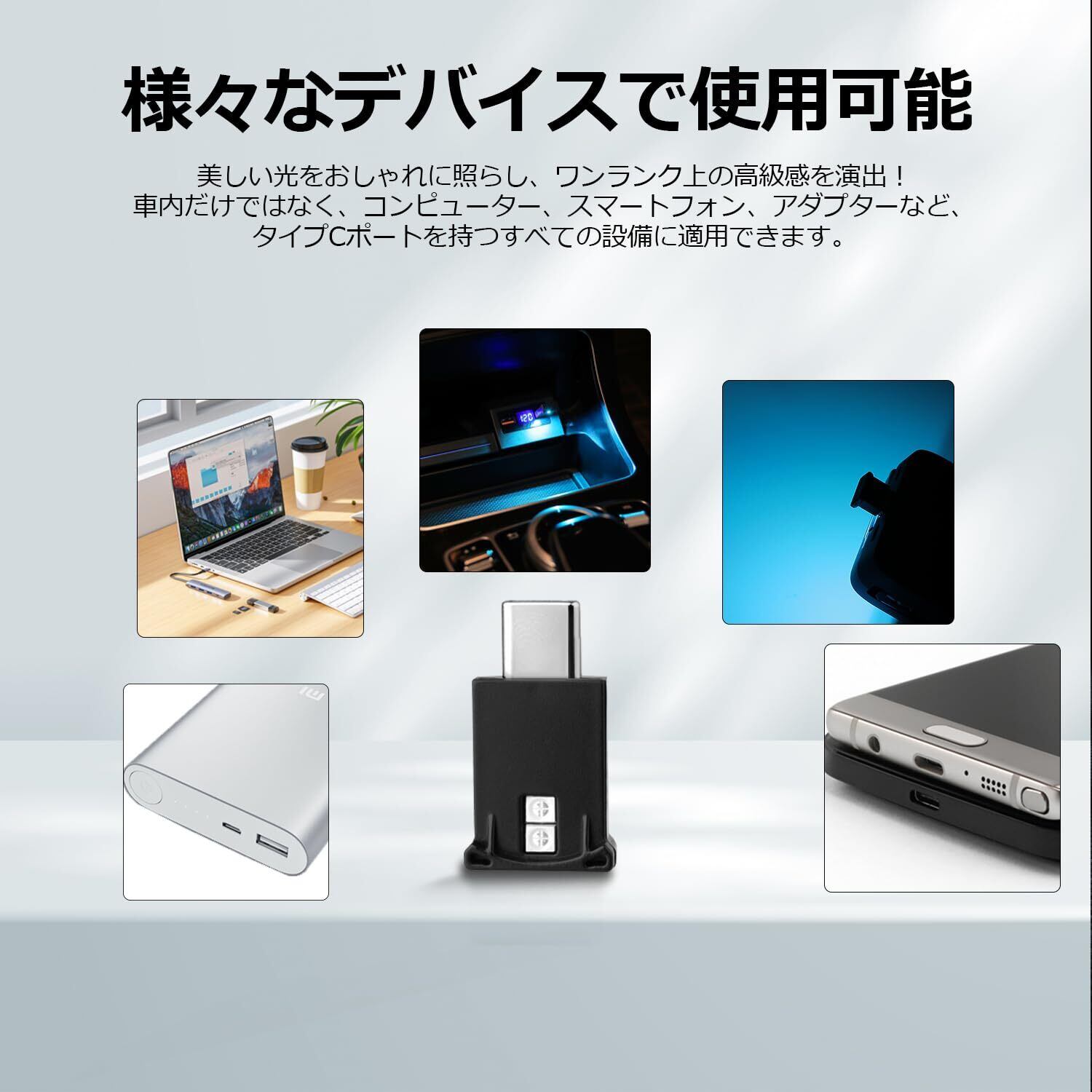 1.【Type-C usbライト】車内にあるc型 USB ポートに接続するだけで、暗くなると自動に点灯するアンビエントライトです。タイプCポートを持つすべての車両や設備に適用できる広範な用途を備えています。「セット内容」:USB LEDライト Type-C×1p。