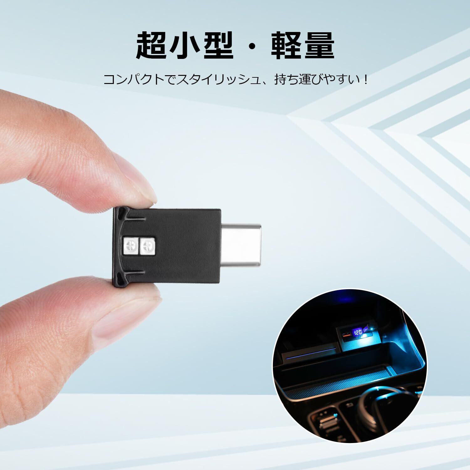 Type-C USB LEDライト 車内用 8色 メモリー機能 自動点灯 調光機能 アンビエントライト RGB USB給電 イルミネーション タイプc ミニライト 小型 軽量 車アクセサリー 簡単取付 1PCS