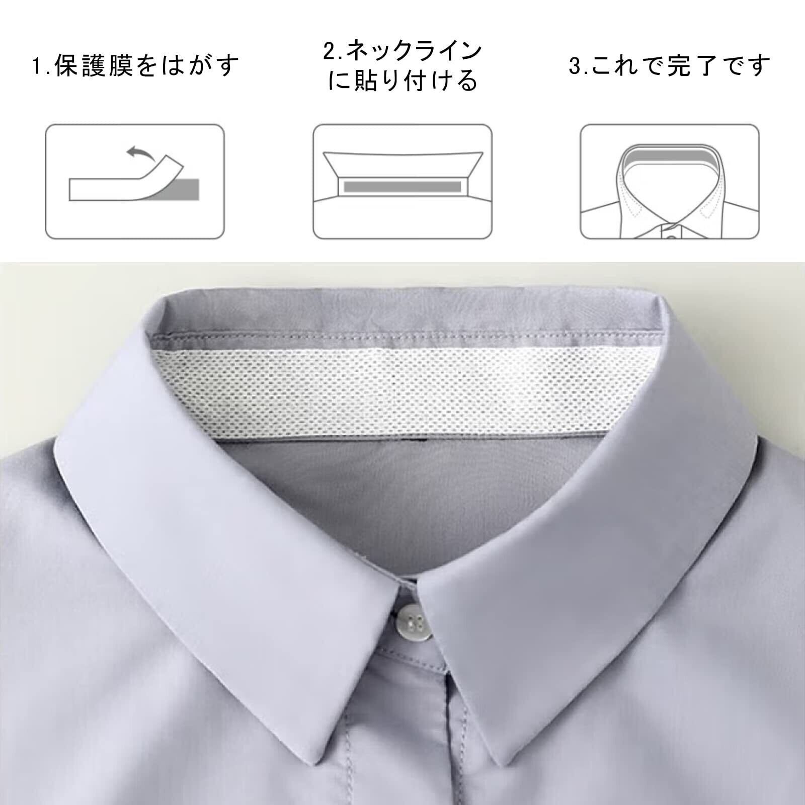 【汗取りパッド】汗じみと汚れ防止、汗を吸収し、臭いを取り除きます。ワイシャツやブラウス、新品の衣類の襟や袖口、毎日洗う作業着、制服など、汚したくない部分に貼るだけで皮脂汚れやファンデーション汚れを防止。