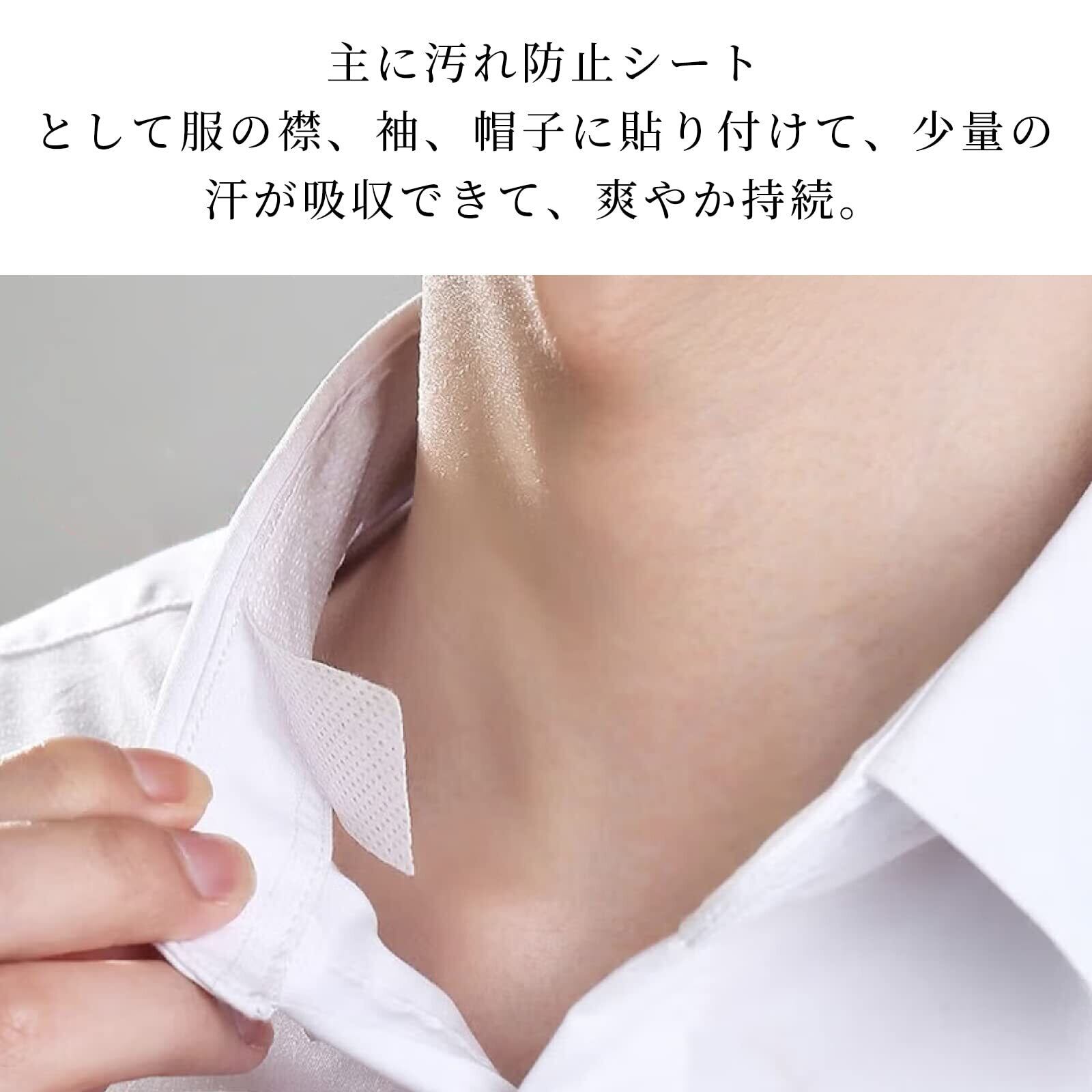 【使いやすさ】使い捨てタイプ、自己粘着、剝がせ易い、衣服に粘着剤が残すことがありません、使用便利です。主に汚れ防止シートとして服の襟、袖、帽子に貼り付けて、少量の汗が吸収できて、爽やか持続。