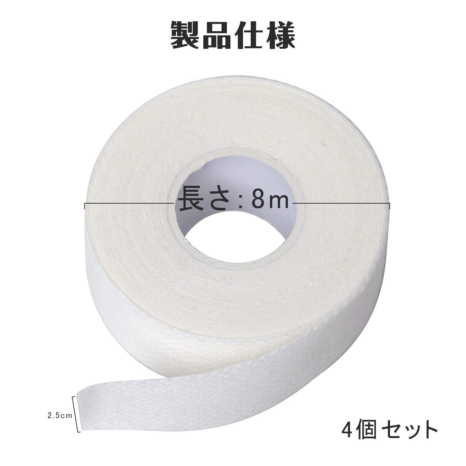 【セット内容・サイズ】4個セット、カラー:ホワイト、幅:2.5cm、長さ:8m、素材:不織布。