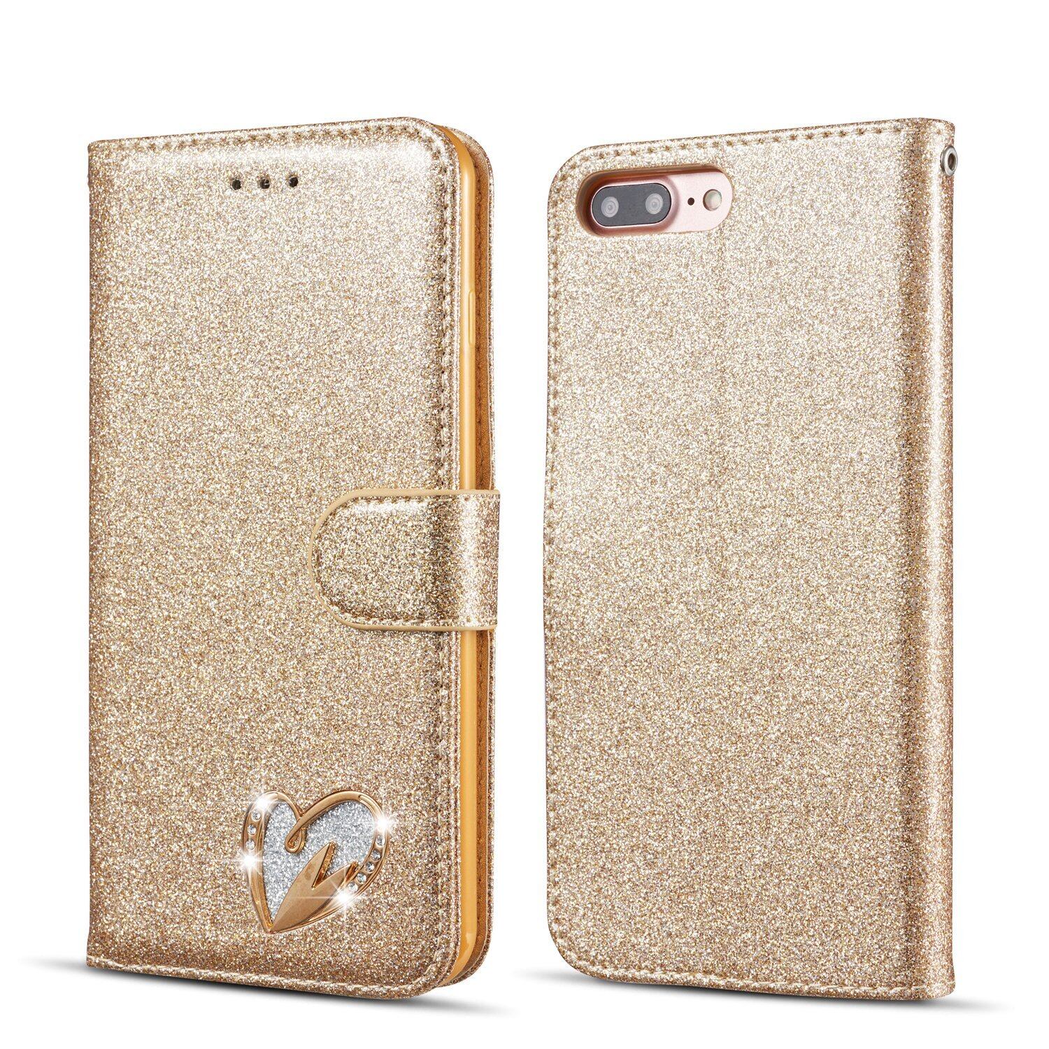 【スタイリッシュなデザイン】キラキラのPUレザーで作られて、ハート形のラインストーンを綺麗に象嵌しています。おしゃれでかわいくて、自用にもギフトとしても素敵です。上質な人気スマホケースです。