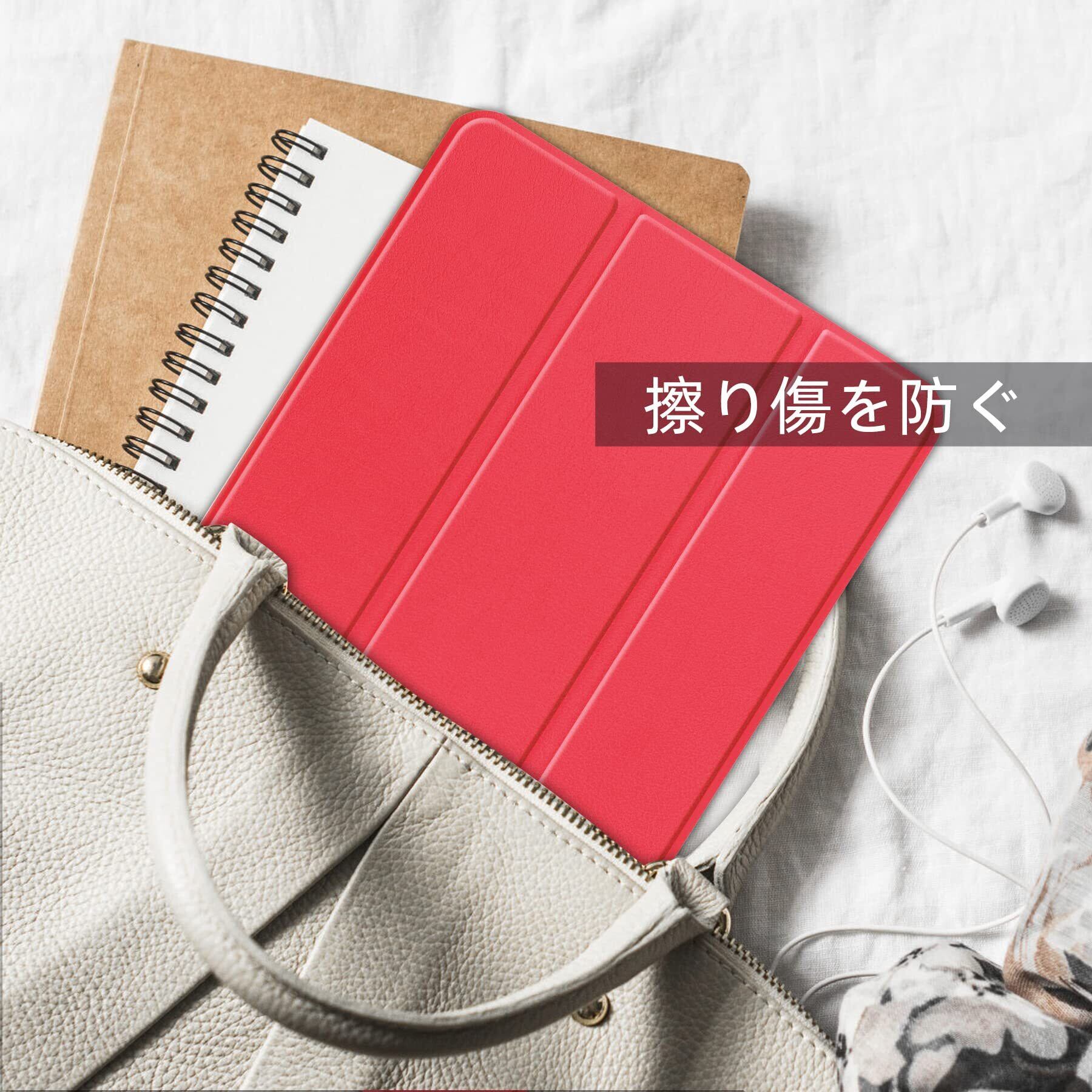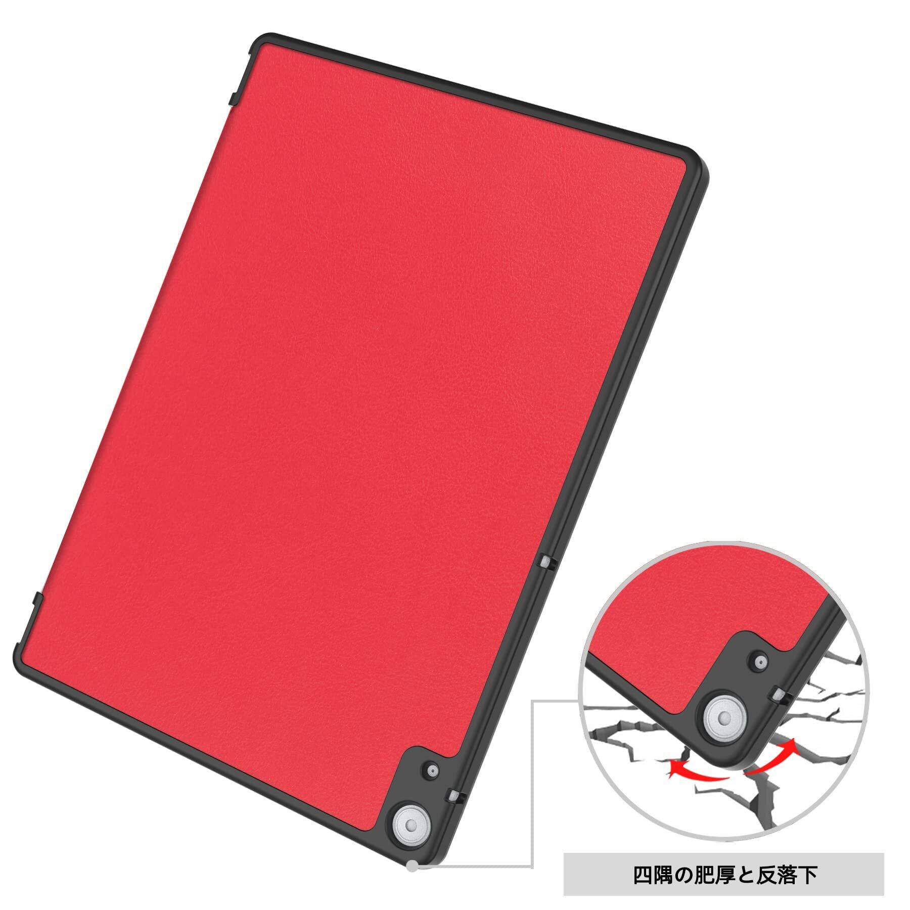 For dtab Compact d-52C 8.4インチ ケース 【larfbulroc】軽量 薄型 PU レザー スマート カバー 耐衝撃 傷防止 ハード 背面 ケース 三つ折り スタンド オートスリープ ウェイクアップ 機能 docomo dtab Compact d-52C 対応 (赤)
