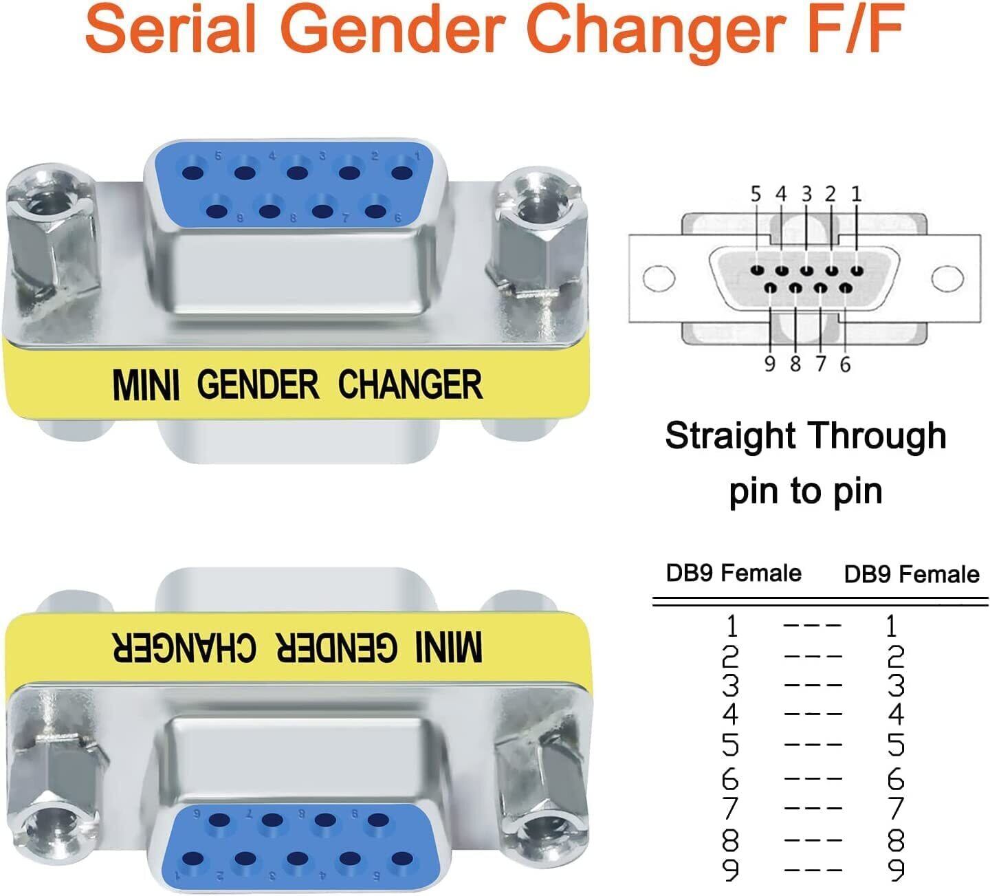 RS232C DB9 変換 小型アダプタ ジェンダーチェンジャー(9ピン メス - メス) D-Sub 9ピン D-sub9pin メス D-SUB シリアル 接続 コネクタ COM 中継 延長 プラグ (1個)