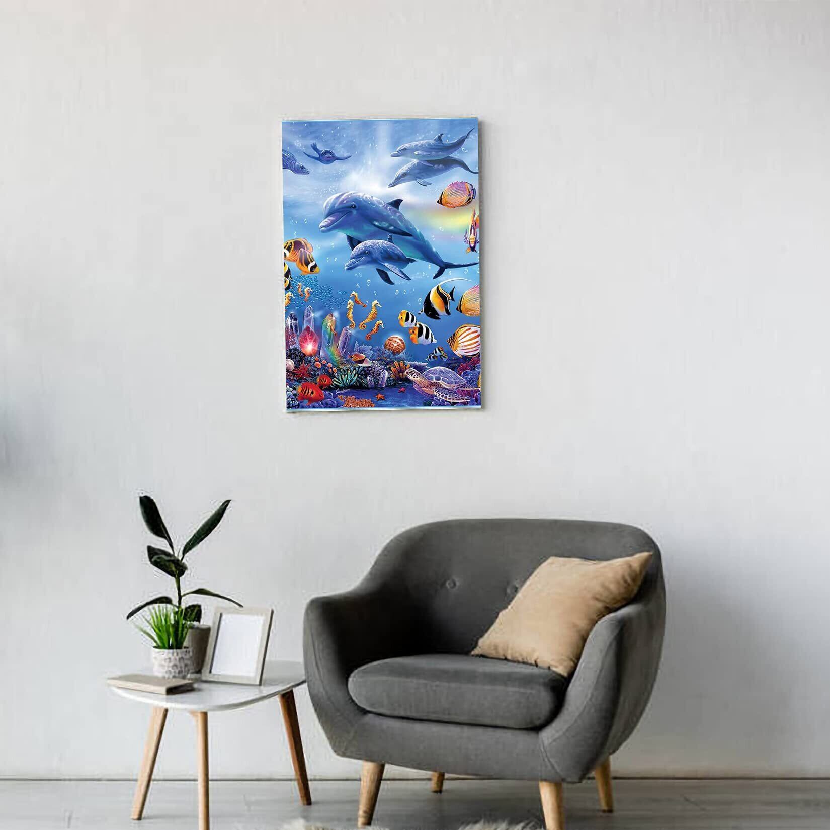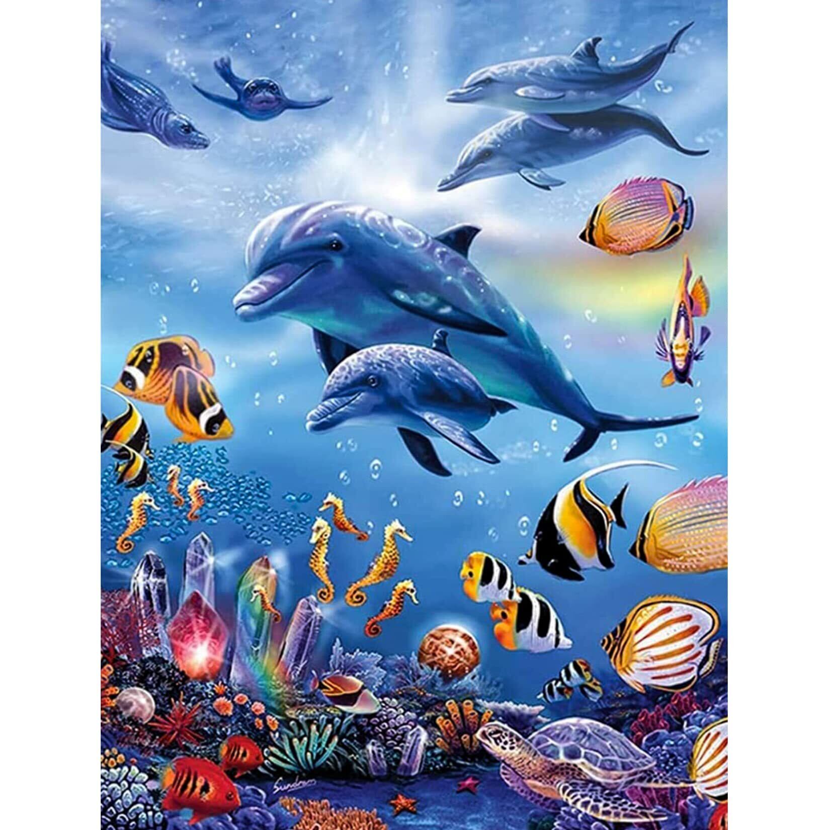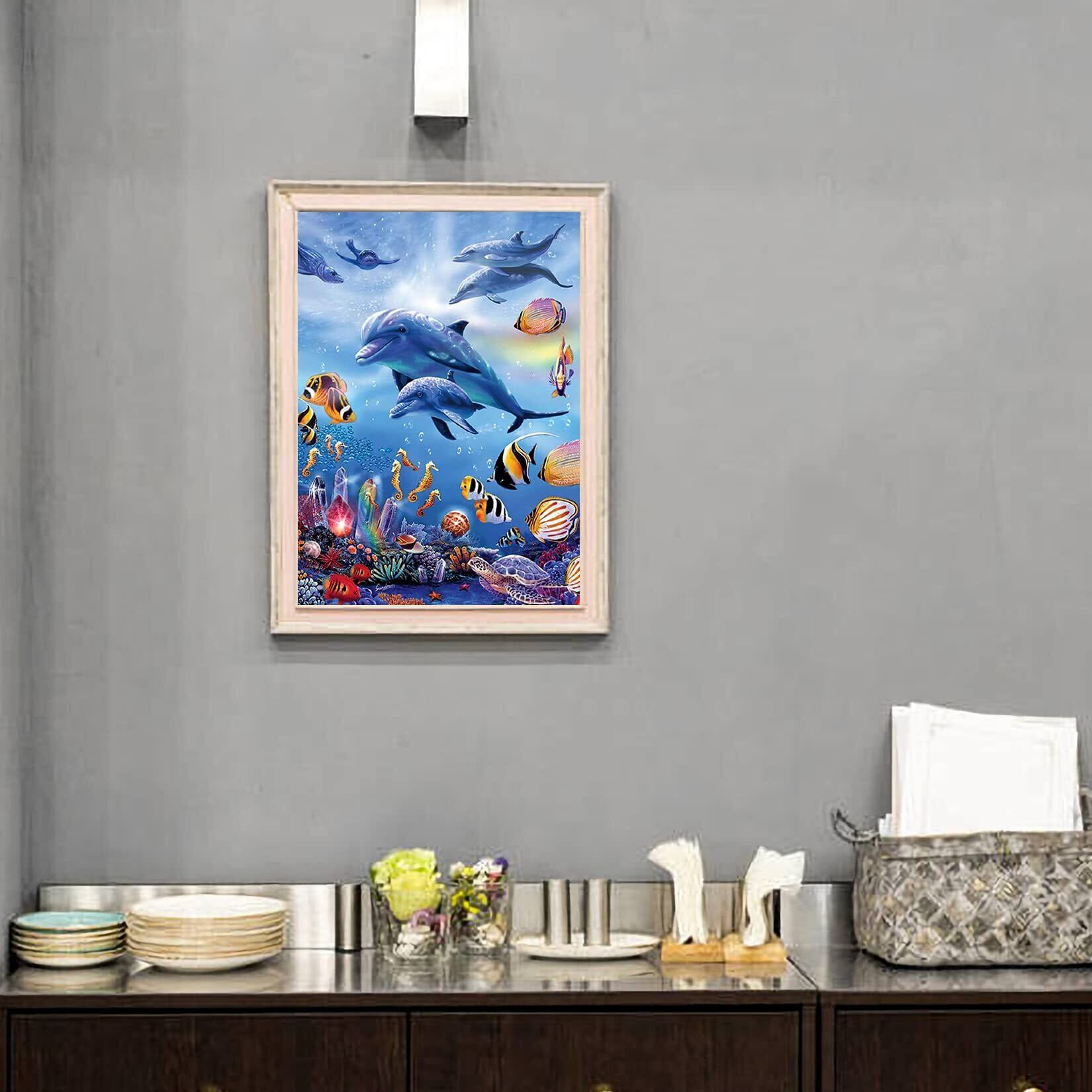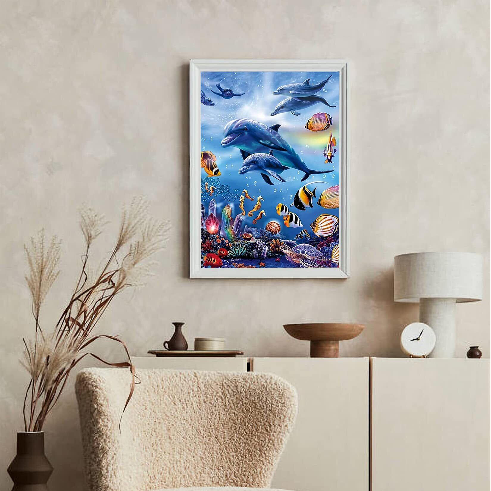 5dダイヤモンドアート イルカと魚 5D ダイヤモンド塗装 モザイクアート ダイヤモンドペインティング キット ビーズ絵画 全面貼り付けタイプ ビーズアート モザイクビーズ 芸術品 装飾 DIY 手芸 キット