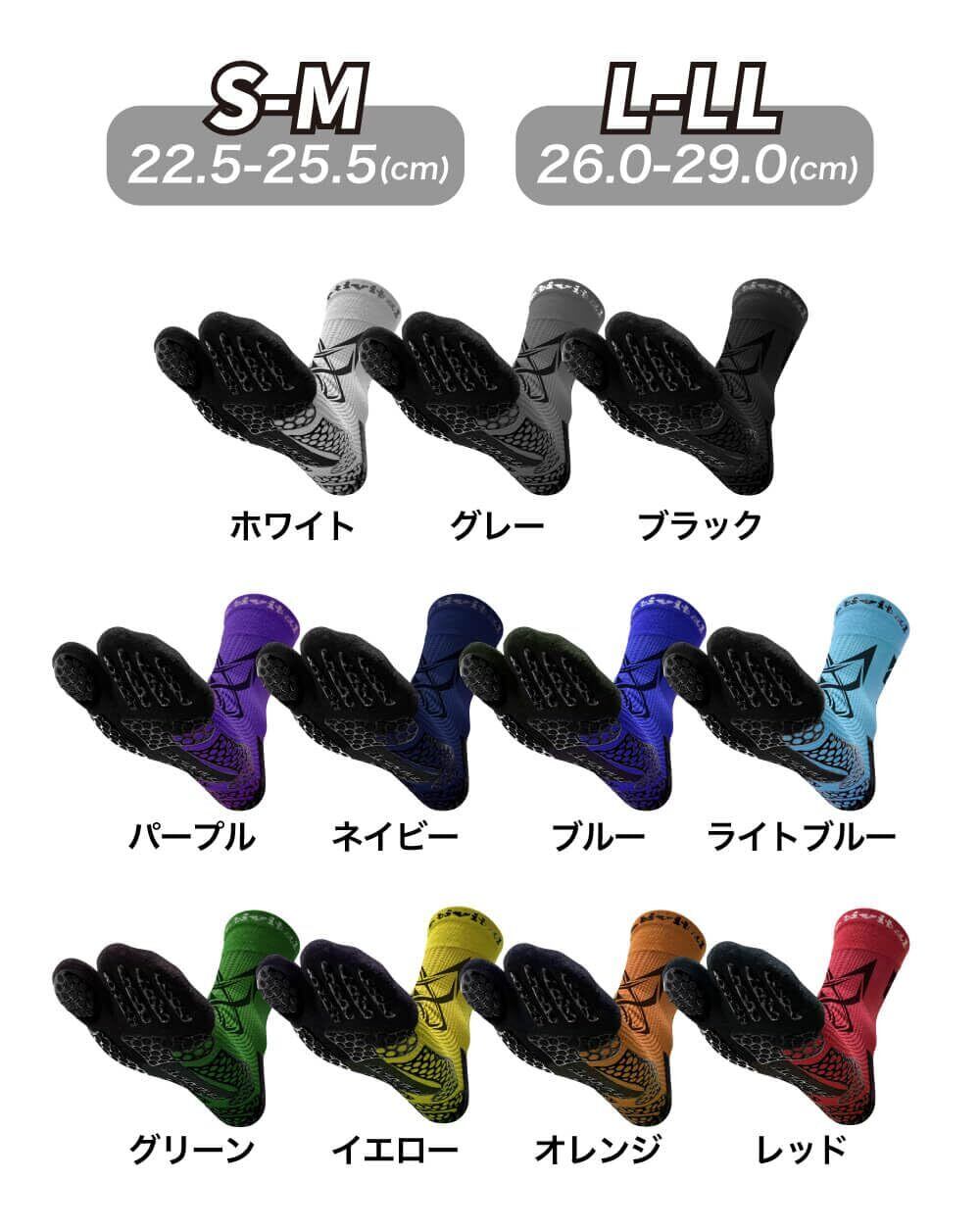 特許取得 靴下型サポーター ・足袋型で足指がしっかり使える ・内側に向けて強圧編みを施し捻挫を防ぐ ・滑り止め付きで高いグリップ力で地面をしっかり捉える ・カカトとつま先は厚地のパイル編みで、着地や蹴り出し時の衝撃を吸収 ・足首(くるぶし、靭帯)を包みこむように編み分け、足首のぐらつきを抑えしっかりサポート 一般の靴下と違い、足の外側から内側にかけてコントロール性の強い編み上げをすることで今までにないサポート力を実現! 靴下が自立するほどの編み分けサポート力です。 ■プロスポーツ選手も愛用! ■足元に不安がある、スムーズな歩行のサポートを。という方にも愛用いただいています 様々なシーンで足元の不安、パフォーマンスの向上にお役立ていただいております。 サッカー、フットサル、マラソン、バスケットボール、バレーボール、ホッケー、ラグビー、アメフト、テニス、ダンス、プロレス、ウォーキング、ランニング、登山、社交ダンスなど