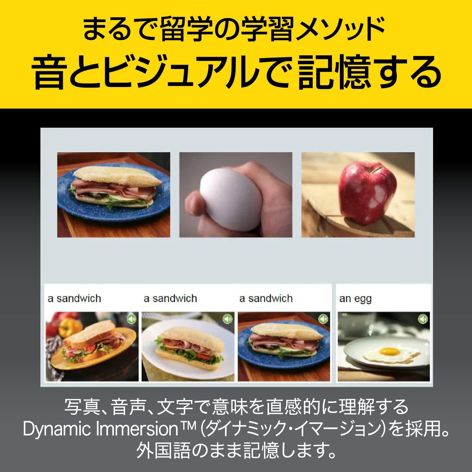 ポイント3:写真、音声、文字で意味を直感的に理解するDynamic Immersion(ダイナミック・イマージョン)を採用。外国語のまま音とビジュアルで記憶します。