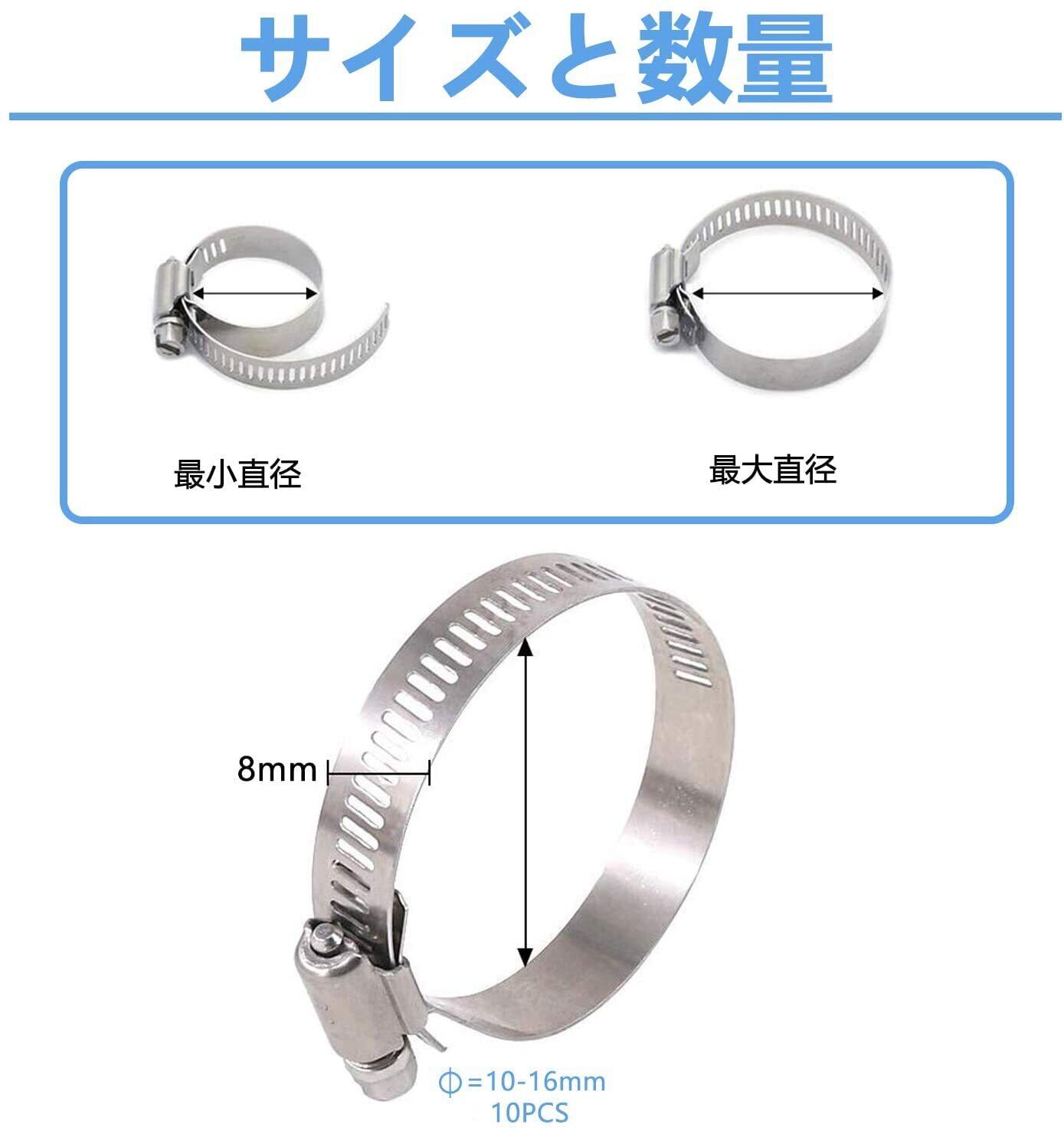 エプダ店 ステンレス鋼 調整可能 ホースクランプ 配管用燃料ラインクランプ、 自動車および機械用途 ホースバンド 10個入り (10-16mm)
