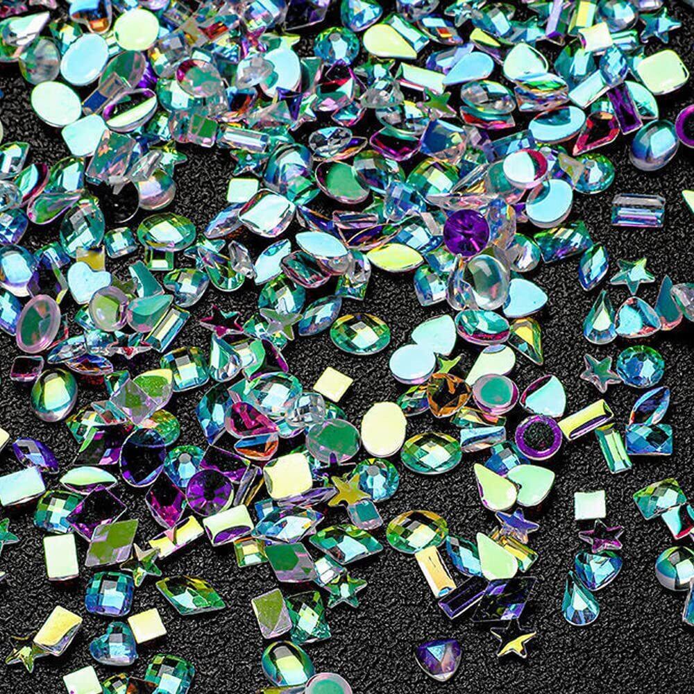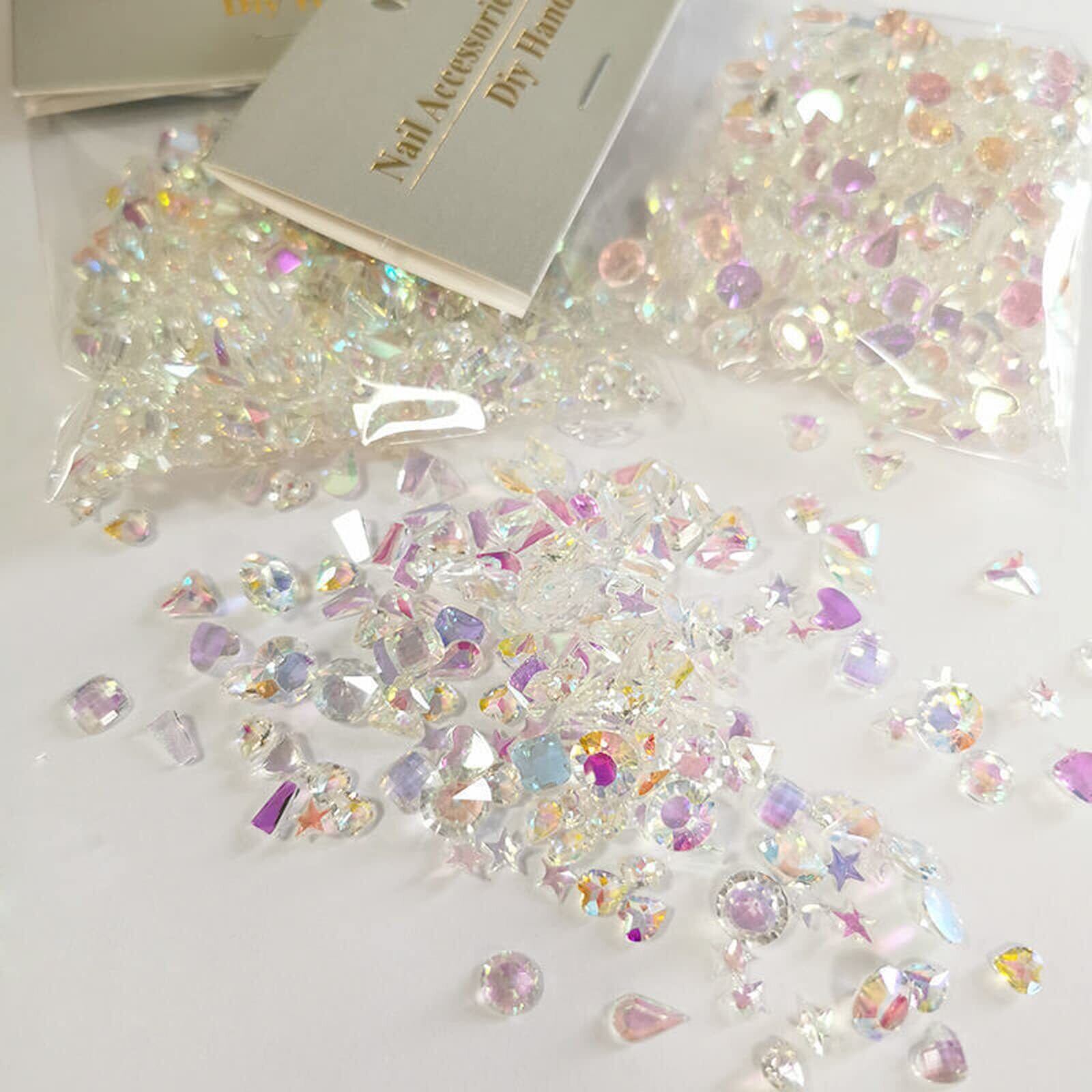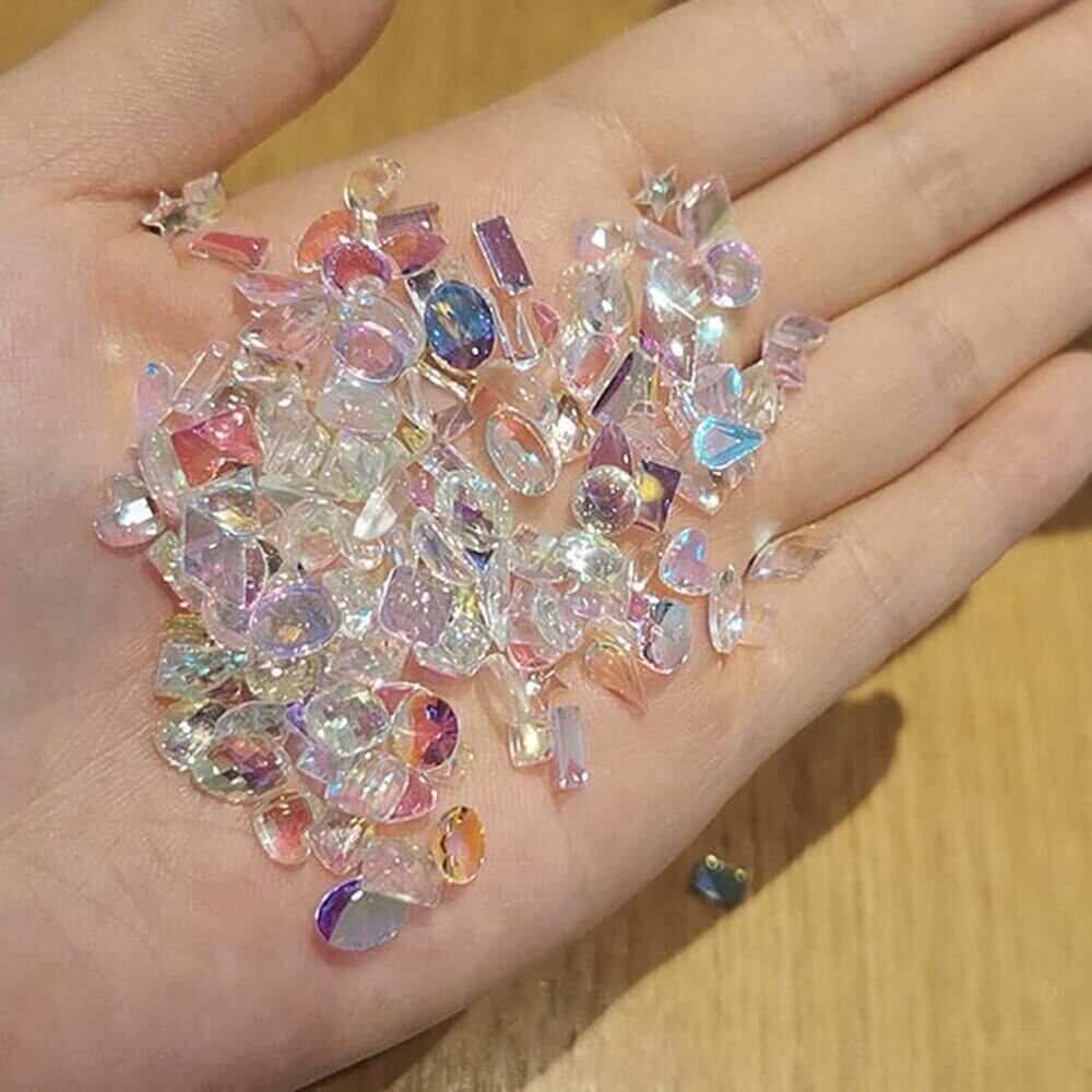サムコス ラインストーン ネイルパーツ 約120粒セット 小さめ オーロラ幻彩 キラキラ 立体 平底 異形 ネイルストーン DIY カラー 混合色 ネイルアート デコ用