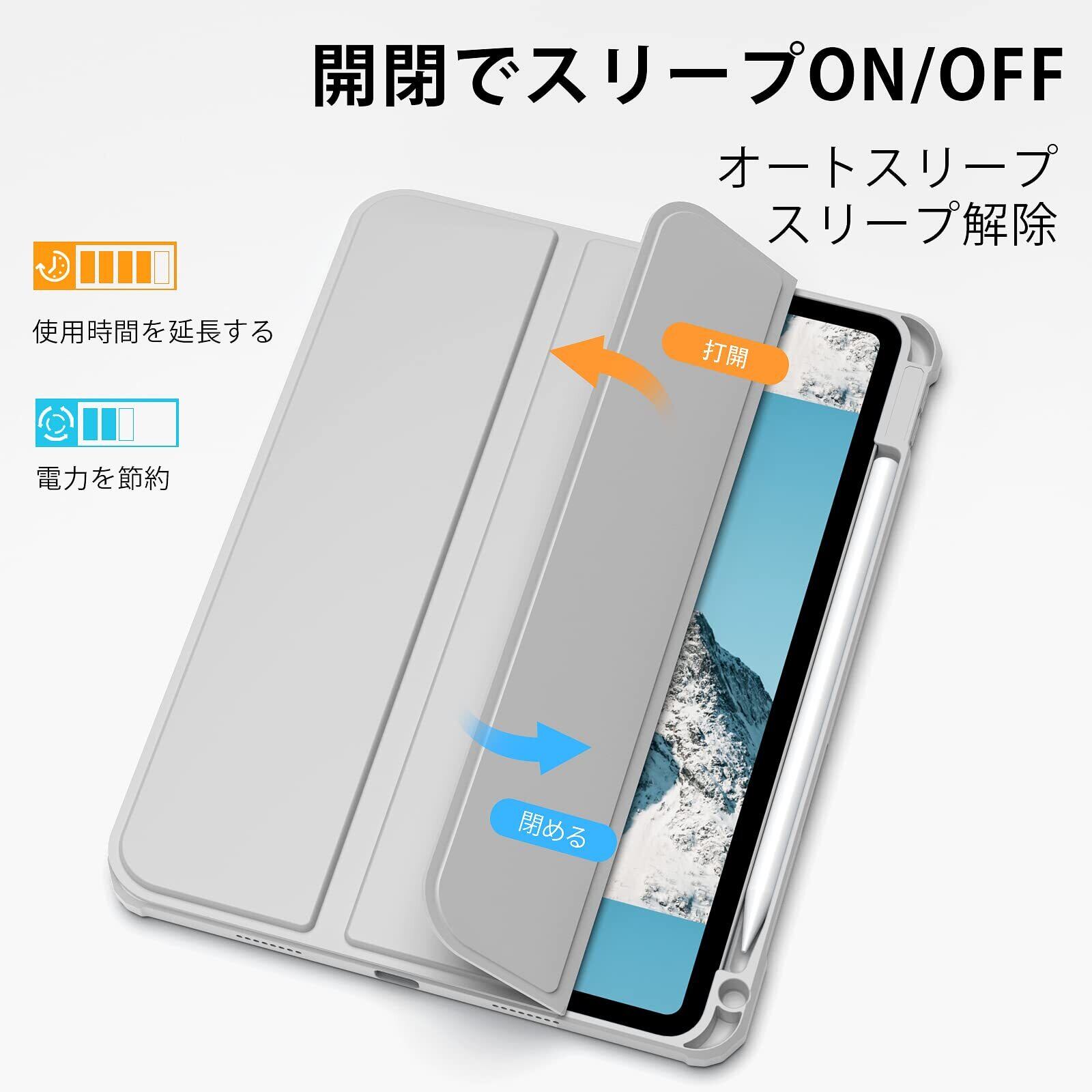 iPad Pro 11 ケース 2022/ 2021/ 2020 透明バックカバー 軽量 薄型 傷つけ防止 PU合成レザー Apple Pencil 収納可能 Apple Pencil 2 ワイヤレス充電対応 三つ折スタンド スリープ機能 iPad Pro 11インチ ケース 第4/3/2世代対応 (グレー)