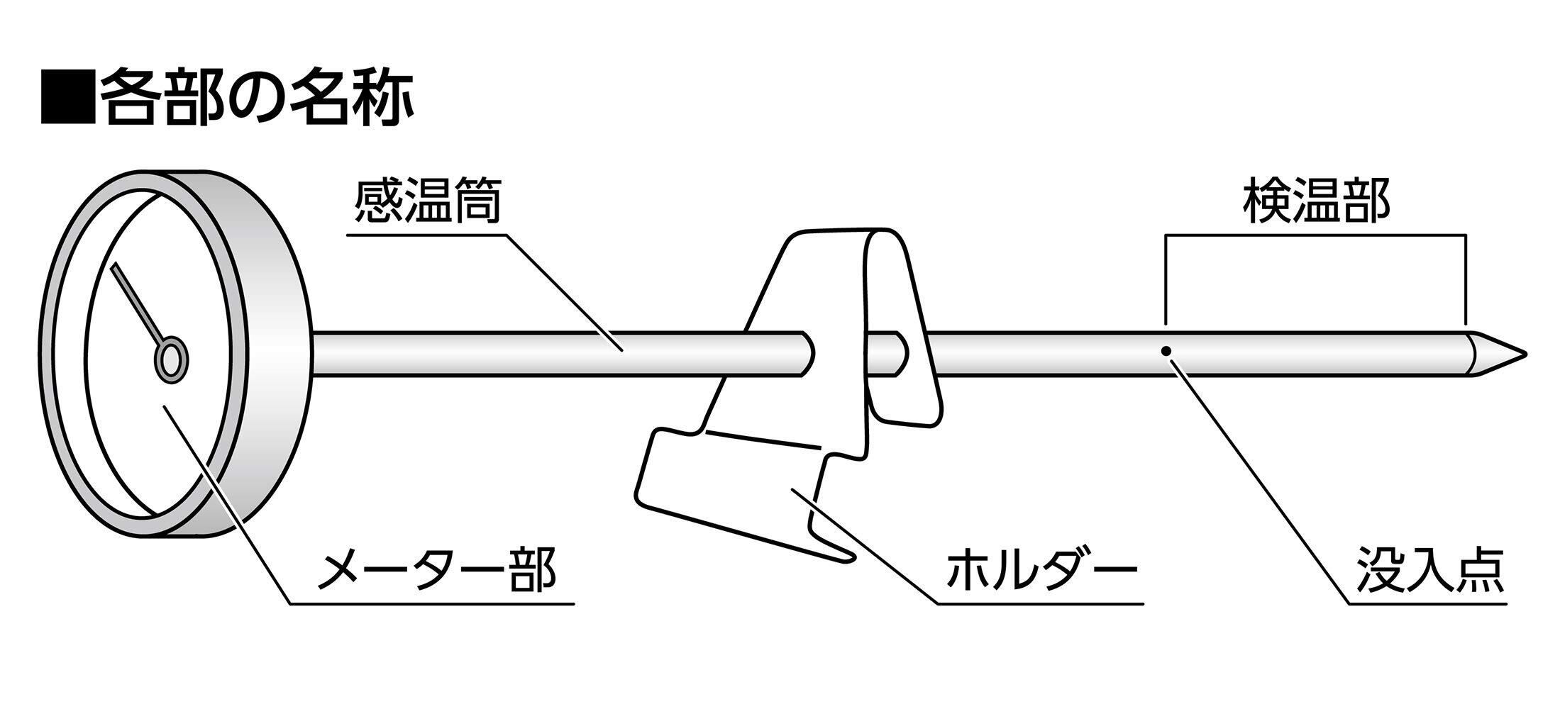 ●食材に差し込んで測定しますので、料理をおいしい温度でいただけます。●ホルダー付なので液体の温度も測定できます。