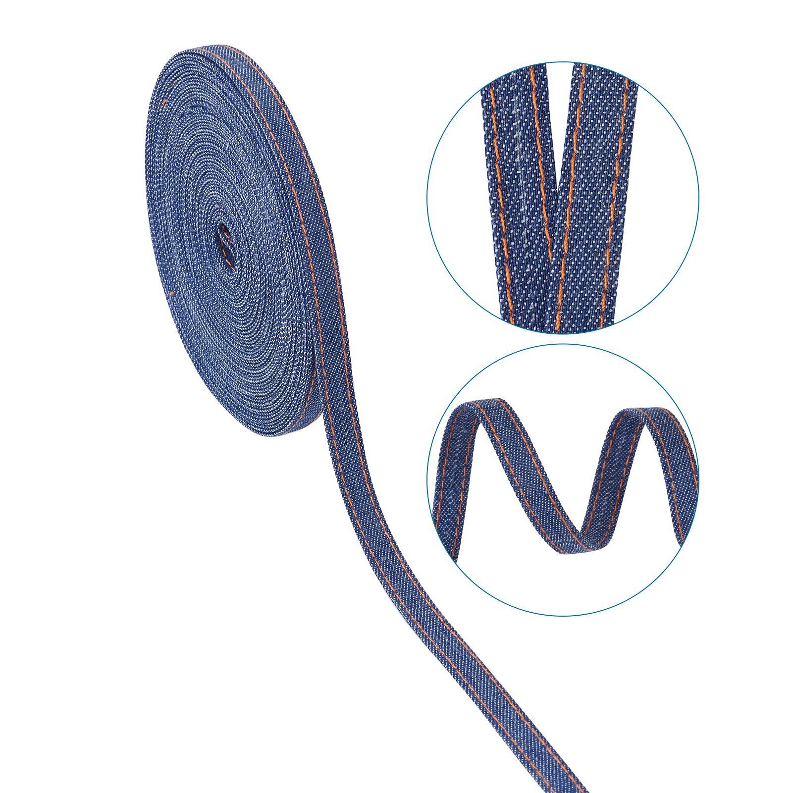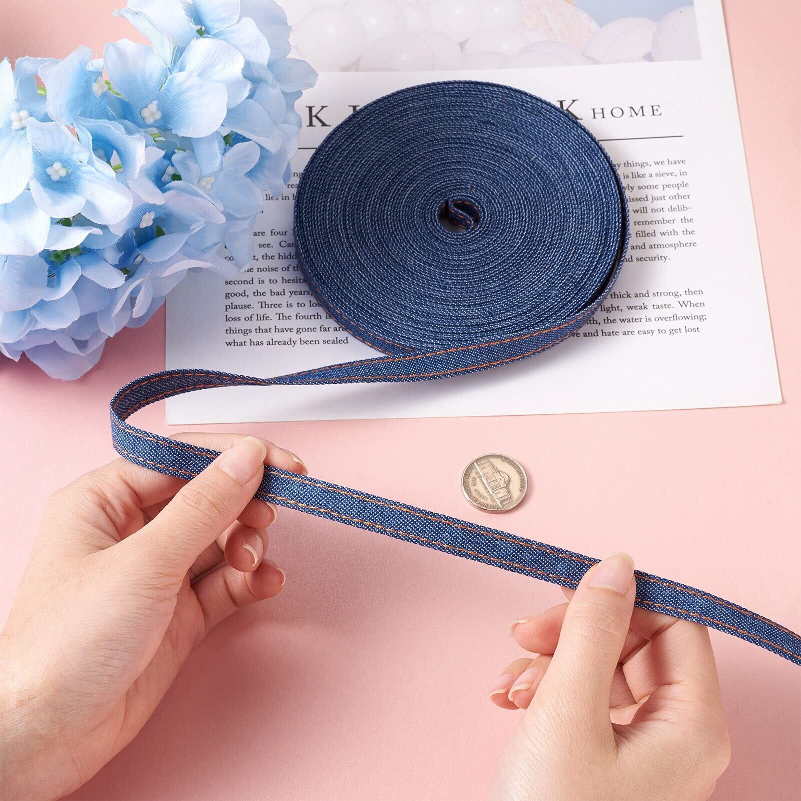 1巻入り 幅10mm マリンブルー ステッチデニムリボン 布生地 ジーンズ トリミング 手芸 縫製用 アクセサリーパーツ DIY ハンドメイド ヘアピン ヘアアクセサリー 服飾り パッチワーク 手作り素材 クラフト用品 約10m/ロール