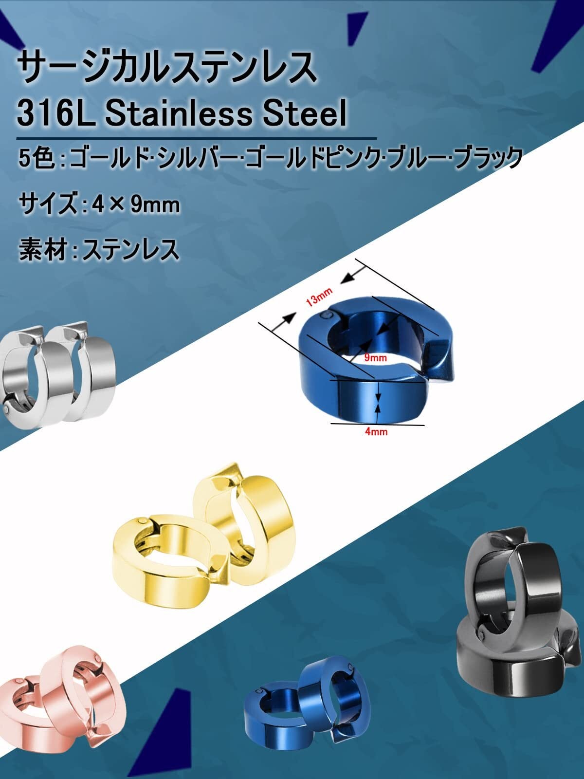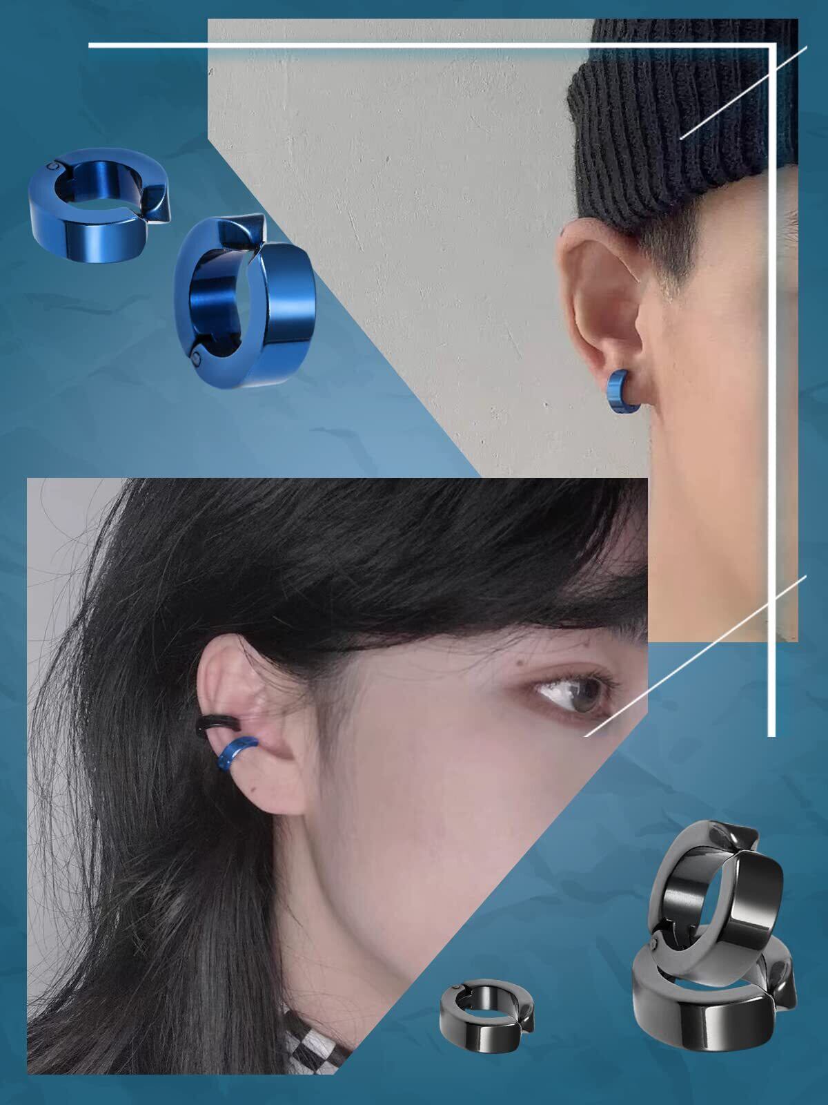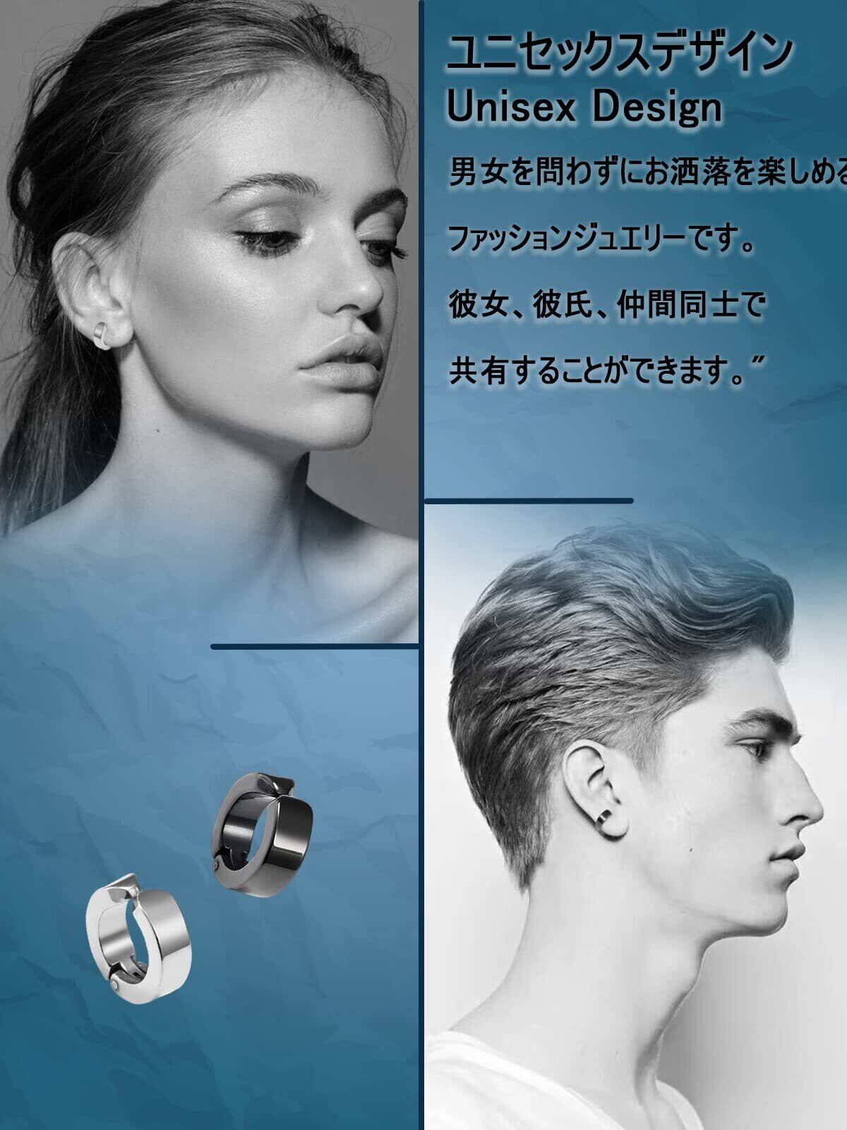 【人気のイヤリング】フェイクピアスタイプなので耳に穴を開ける必要がなく、メンズもレディースもファッションシーンで使い回しやすいです。ユニセックスデザインなので、イヤリングをペアでつけたり、片耳だけ付けたり、重ね付けたり、軟骨ピアスとして、色違いで付けたりして付け方法が色々あります。